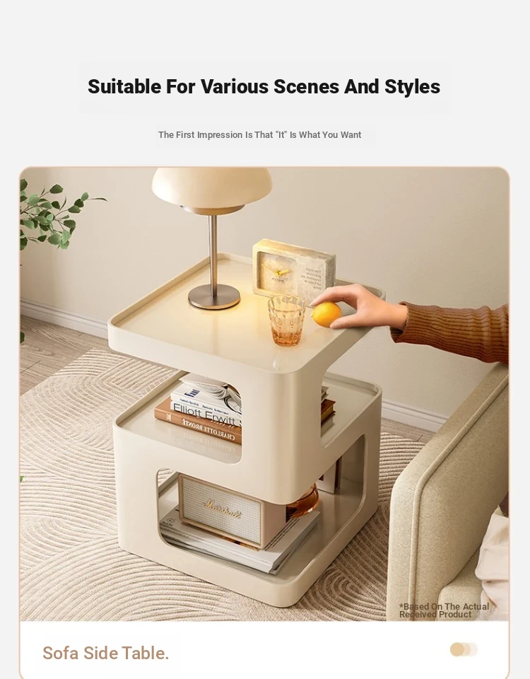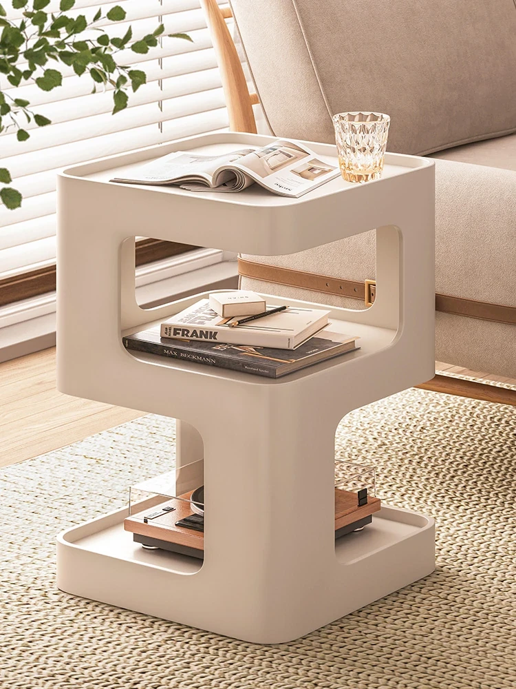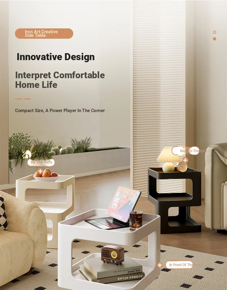 Creamy Luxury Minimalist Side Table - Modern Iron Balcony End Table & Sofa Side Cabinet for Chic Home Decor