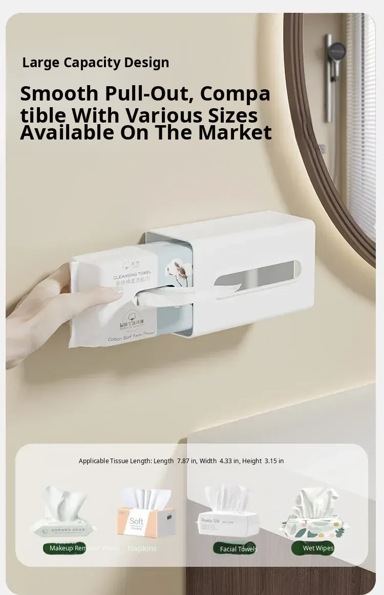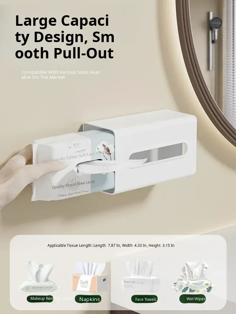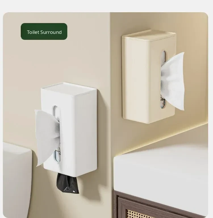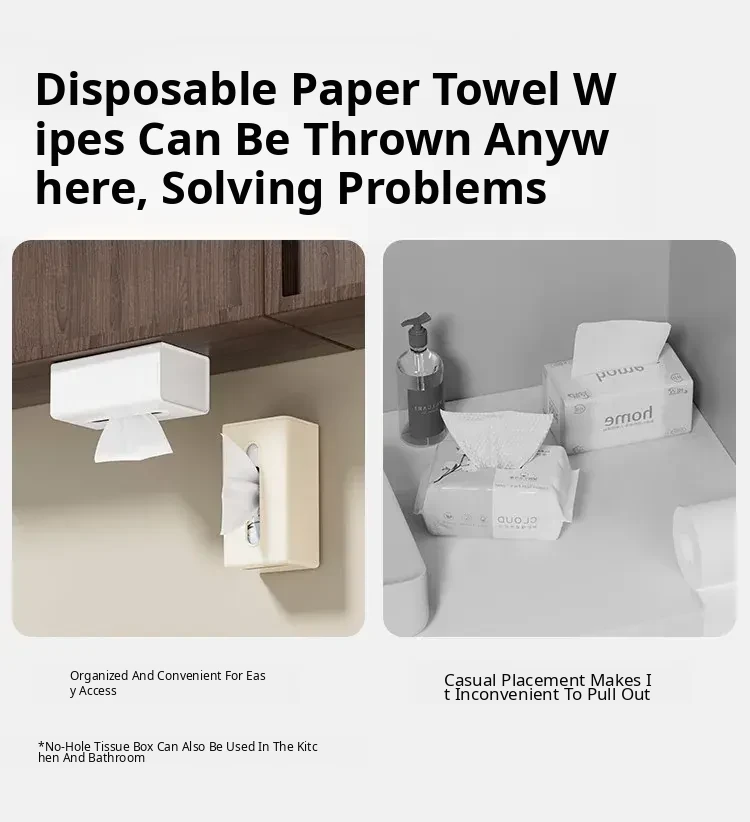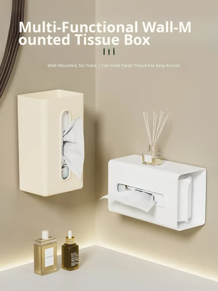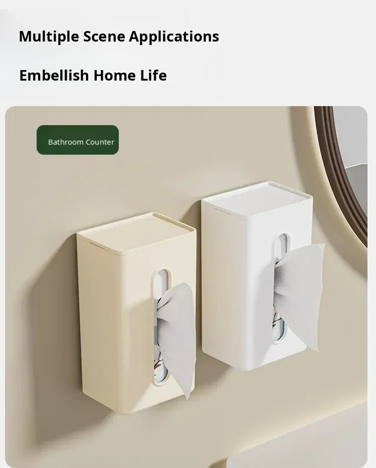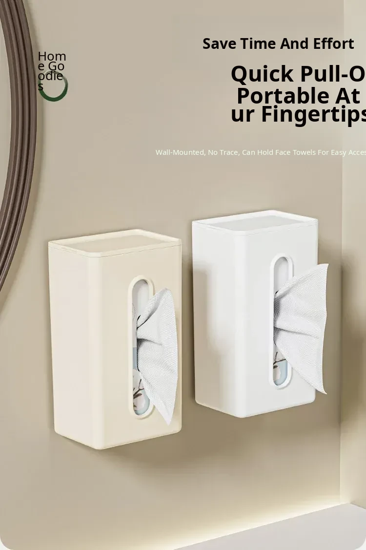 Creative Wall-Mounted Tissue Box - No Drill Bathroom & Kitchen Storage for Washcloths and Paper Rolls - Stylish and Functional Tissue Organizer