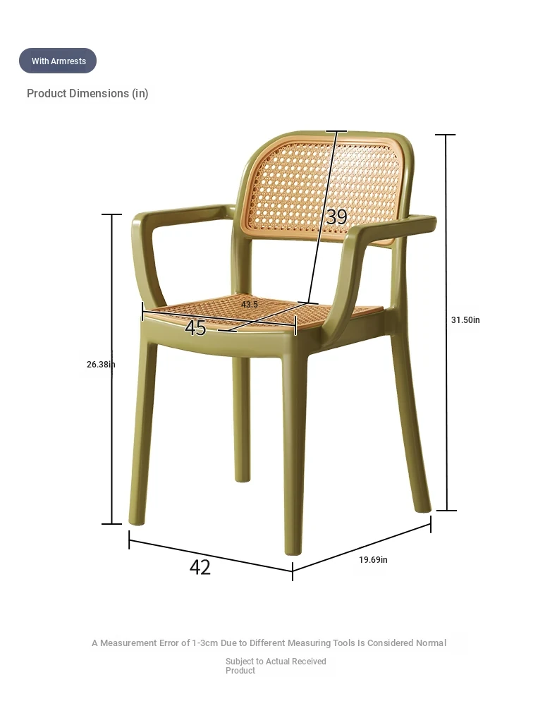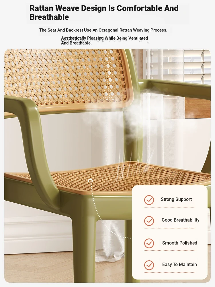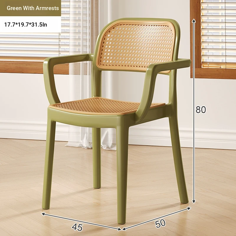 [Upgraded Armrests/Stable Support] Green Imitation Rattan Chair with Armrests
