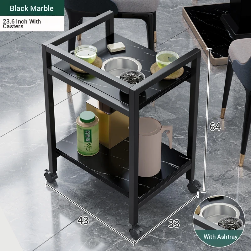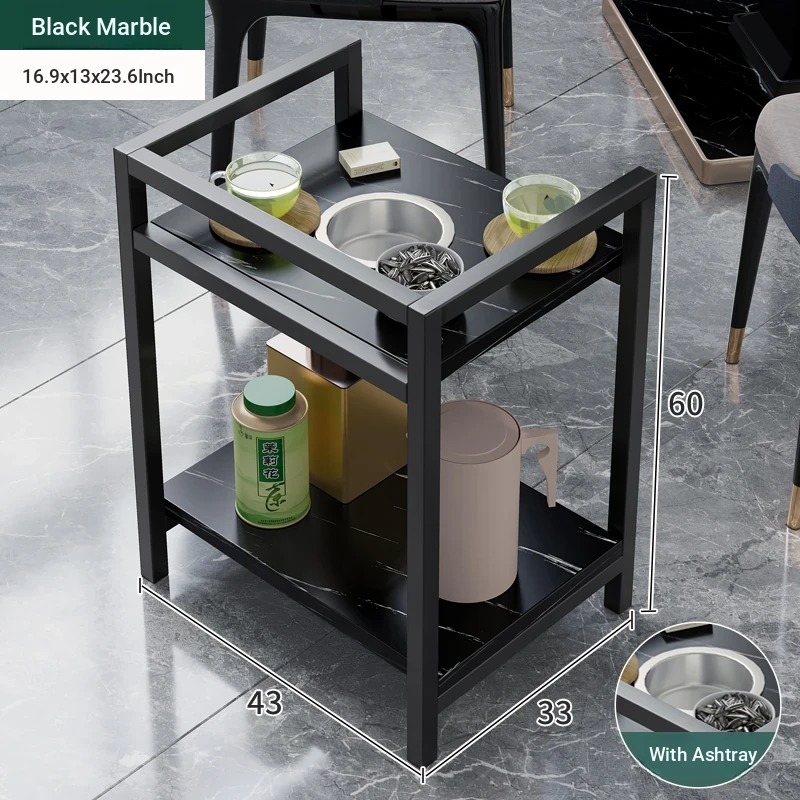 ❤ 【Game Room Side Table * 2】Black Marble + Ashtray + Universal Wheels 23.62in