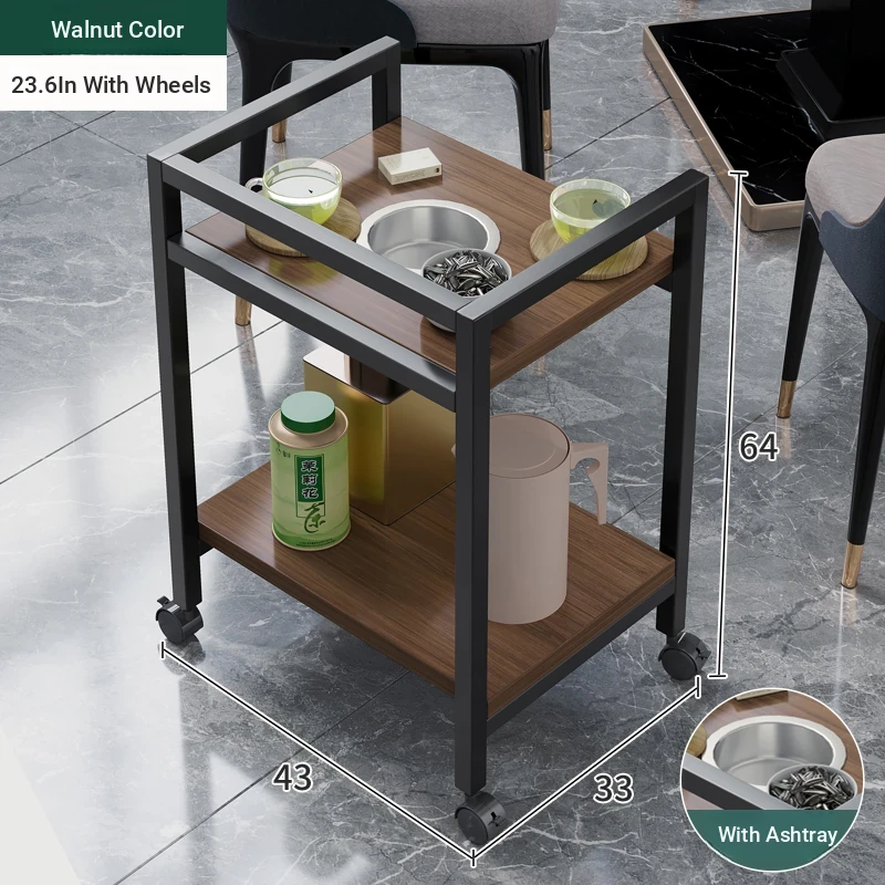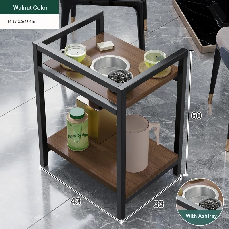 ❤【Chess & Card Room Side Table * 2】Black Walnut Finish + Ashtray + Universal Wheels 23.62in