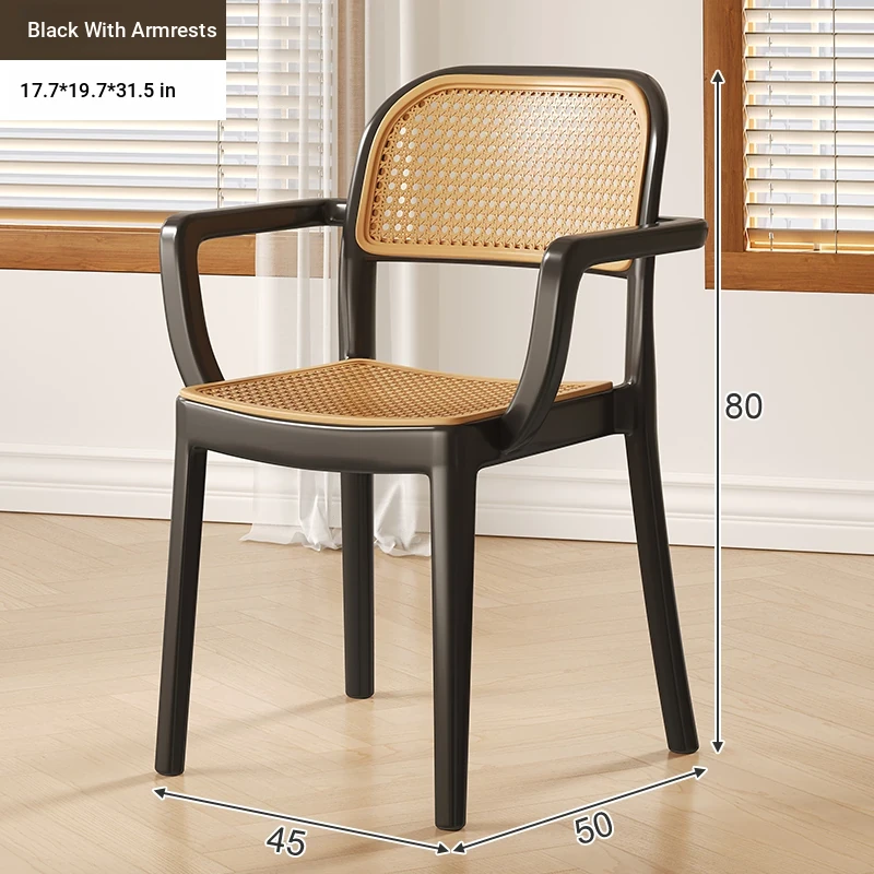 [Upgraded Armrests/Stable Support] Black Imitation Rattan Chair with Armrests