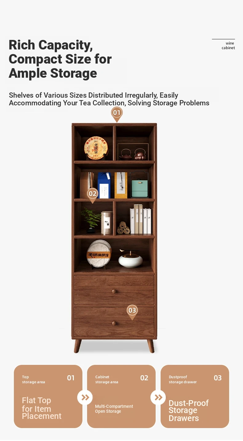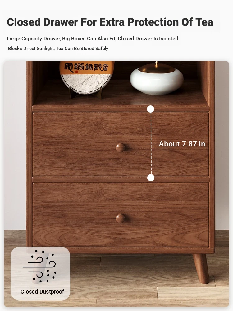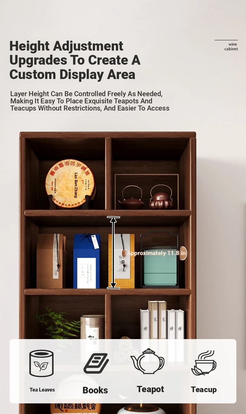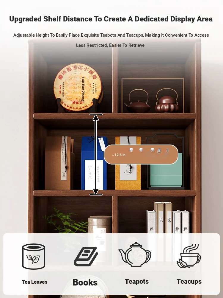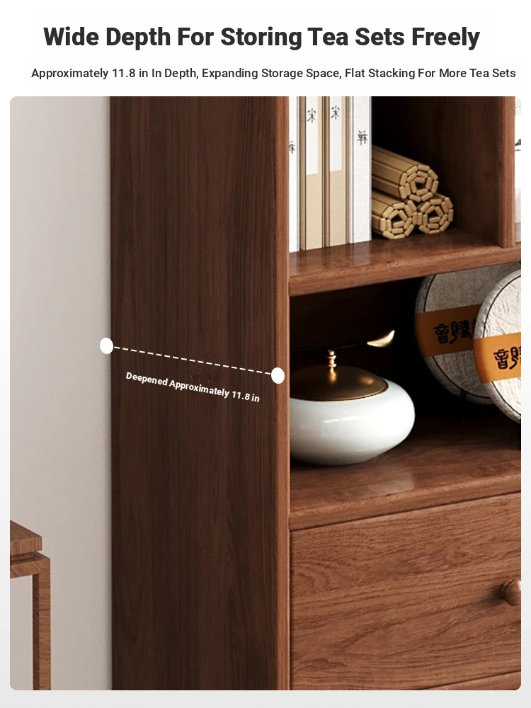 Elegant Chinese-Style Tea Display Cabinet - Solid Wood Eco-Friendly Multi-Purpose Storage Shelf for Tea and Accessories in Your Tea Room