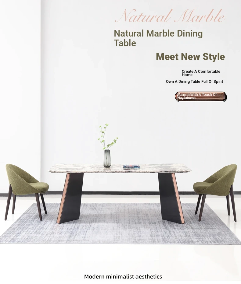 Elegant Italian-Style Marble Dining Table - Modern Minimalist Design for Small Spaces, Perfect for Luxurious Home Dining Experience