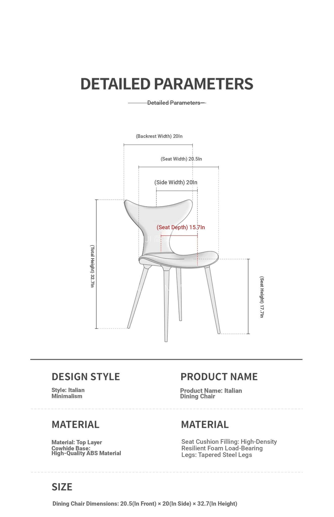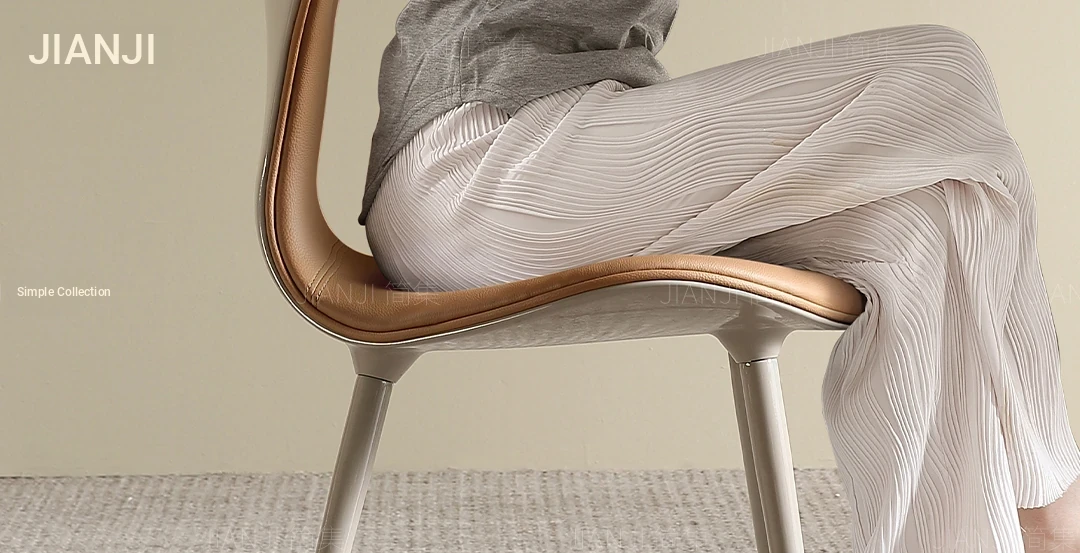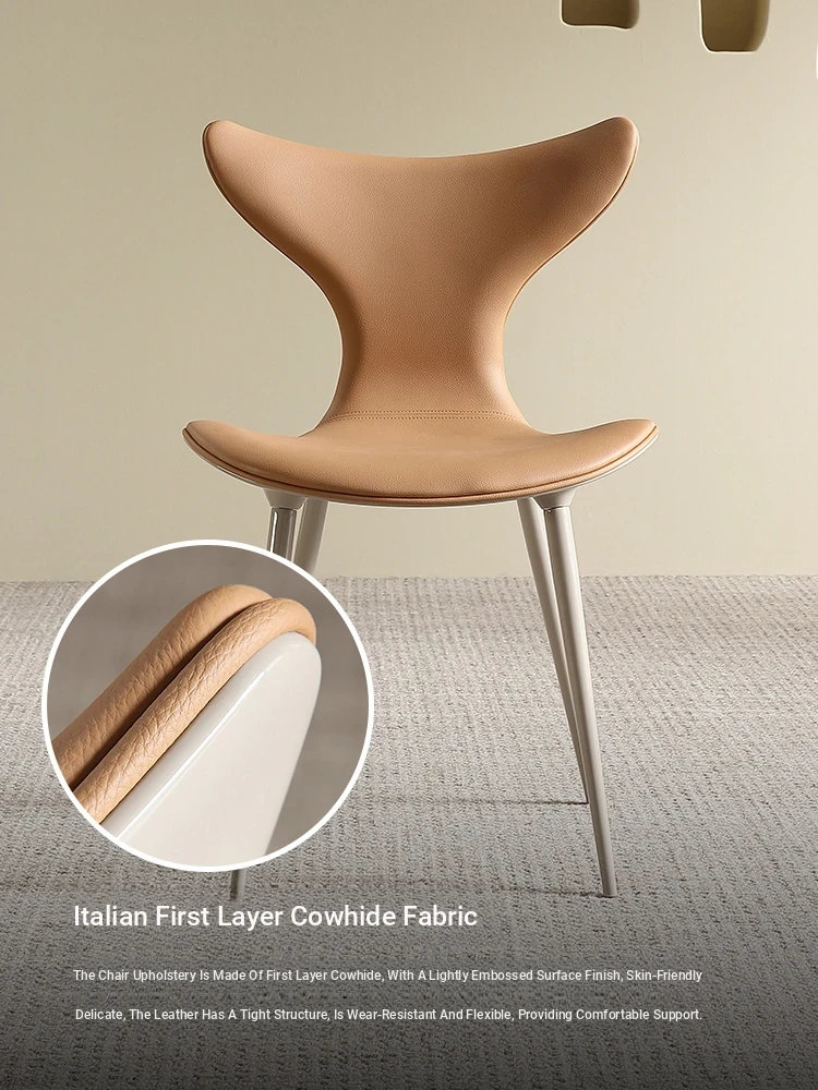 Elegant Minimalist Italian Dining Chair - Luxurious Modern Design with Soft Genuine Leather Upholstery for a High-End Dining Experience at Home