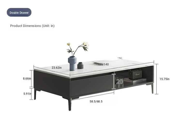 Stream Marble 47.24in Coffee Table Double Draw Ω