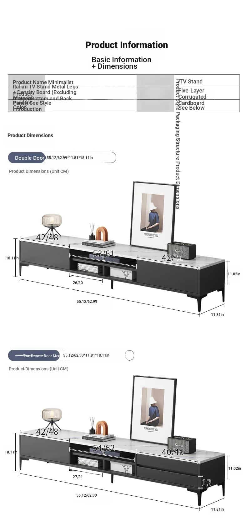Elegant Minimalist TV Stand - Modern Living Room Storage Cabinet for Small Spaces - Italian Style Coffee Table and TV Unit Combo