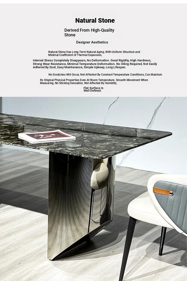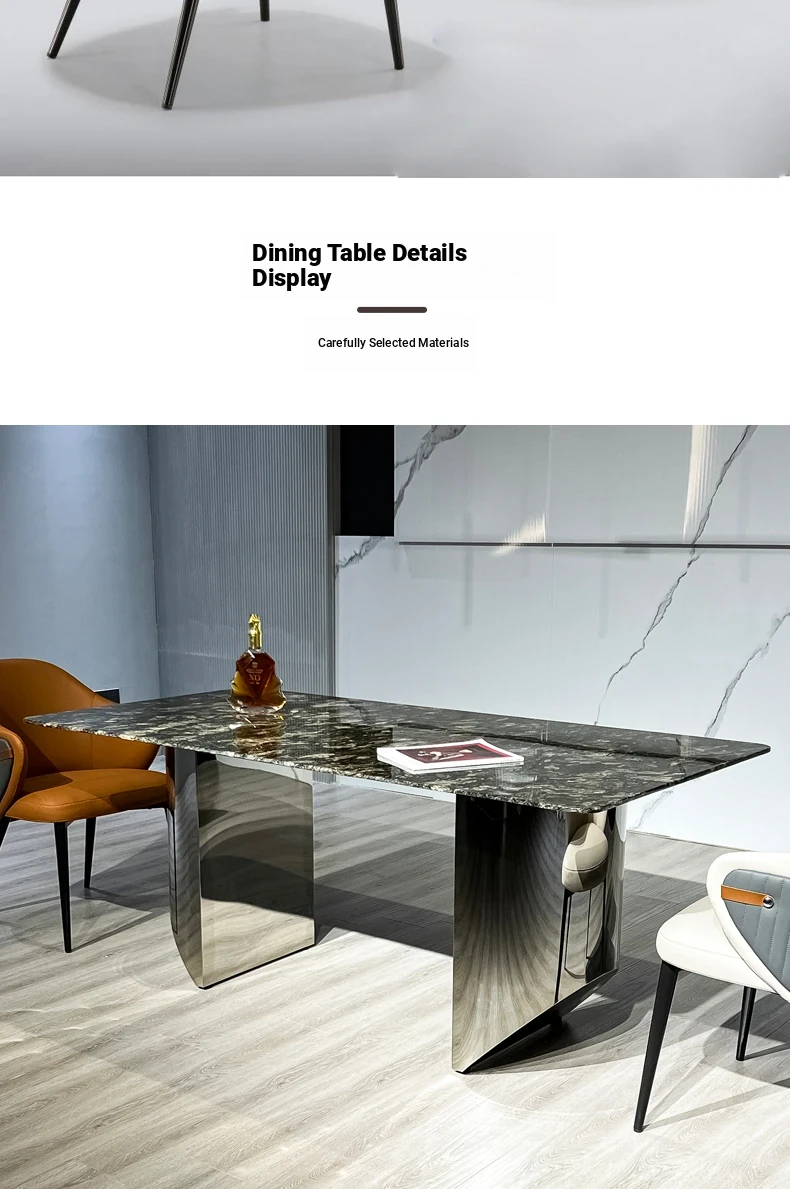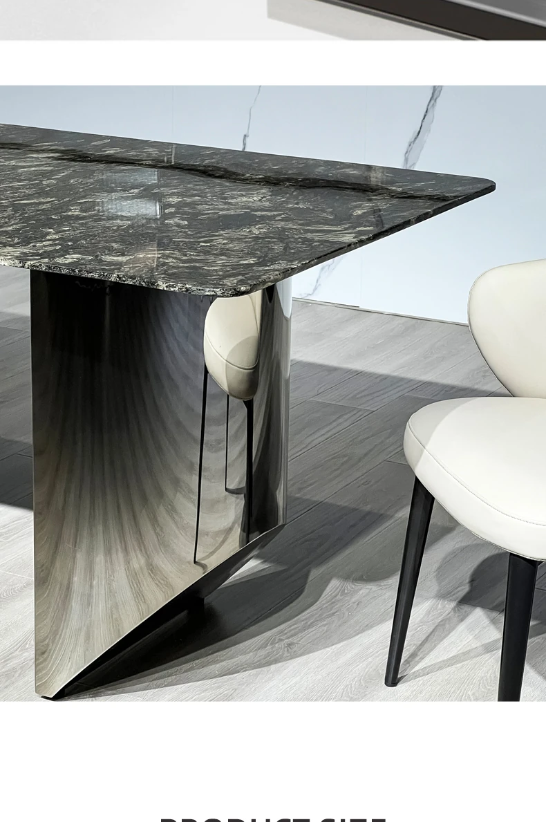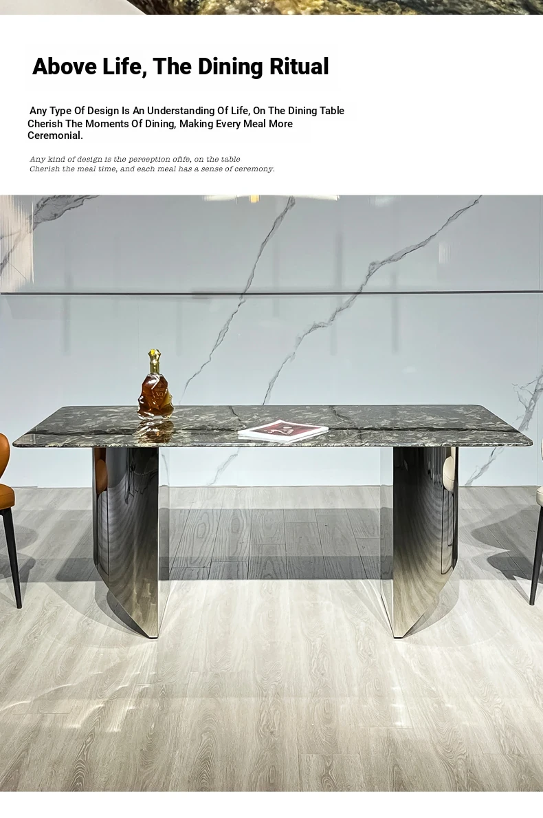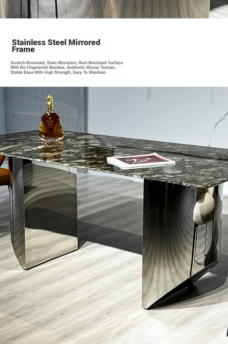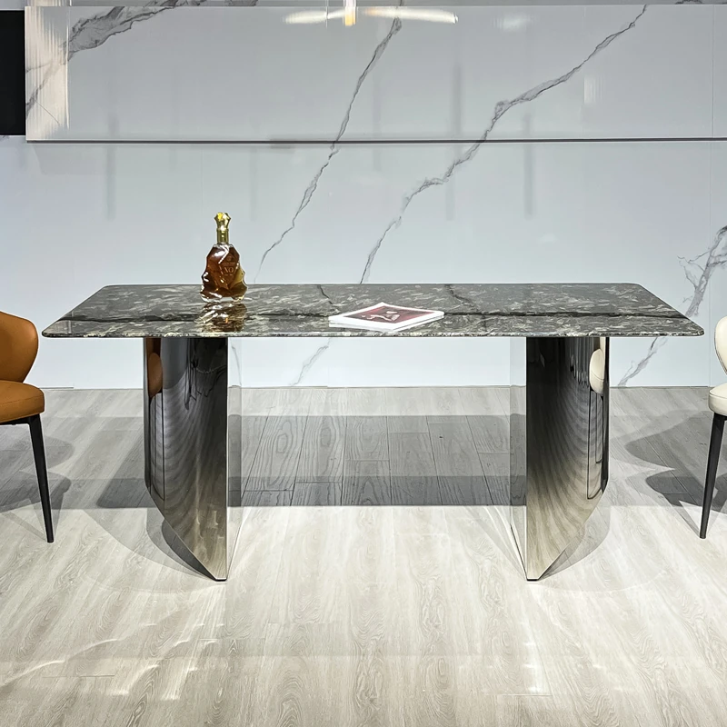 Elegant Modern Rectangular Dining Table with Natural Marble Top and Stainless Steel Legs – Luxurious and Minimalist Design for Home Dining Experience