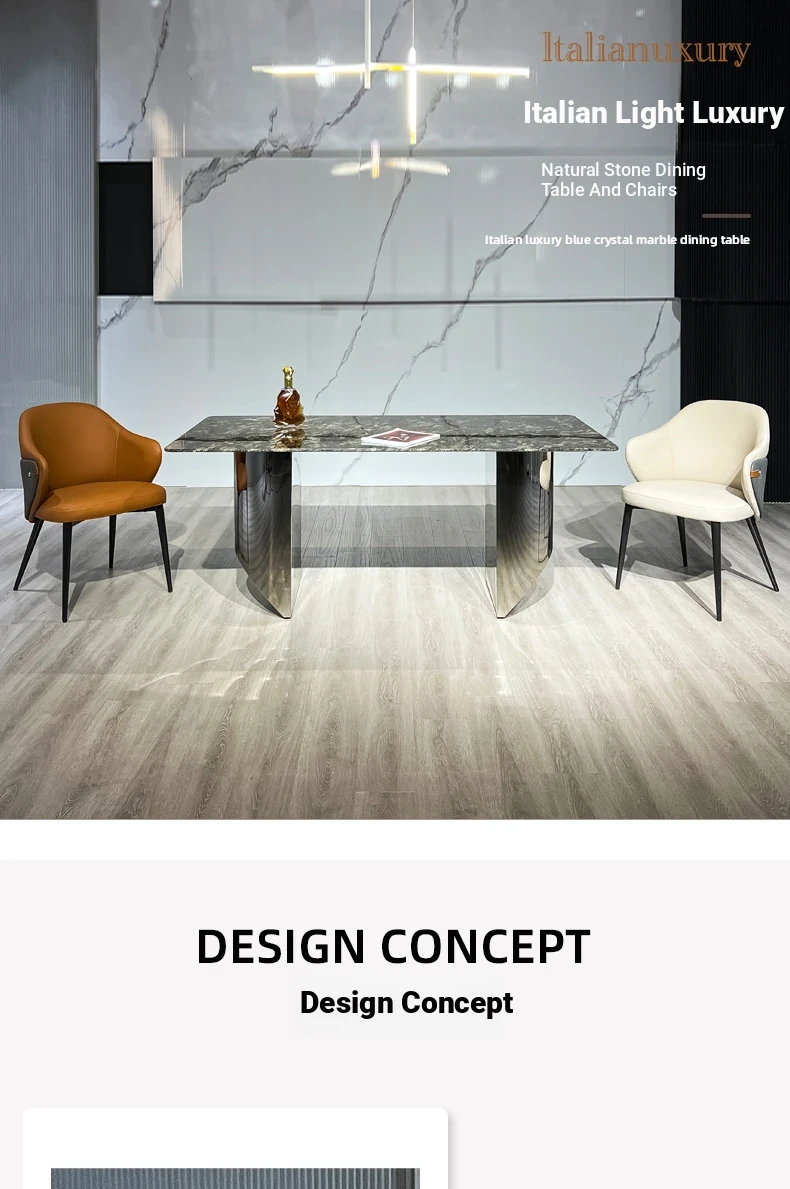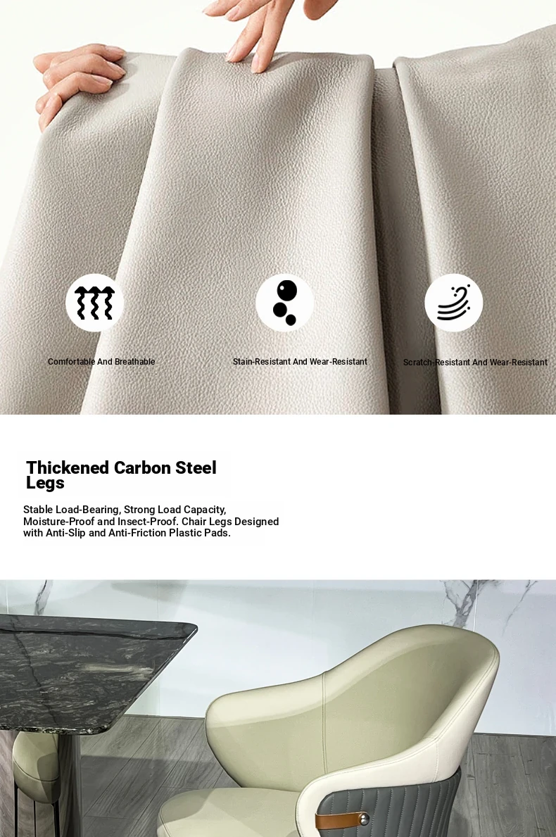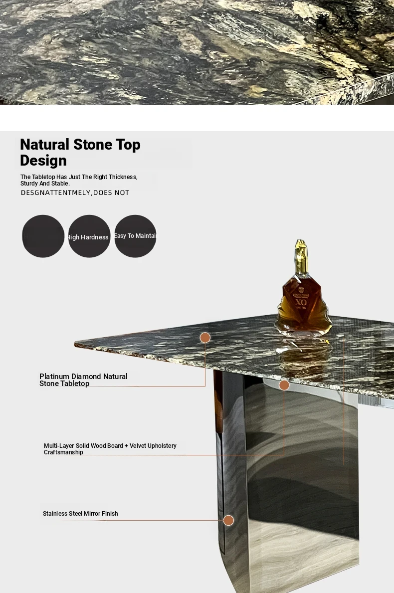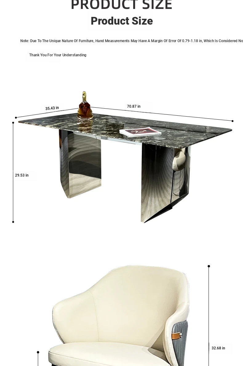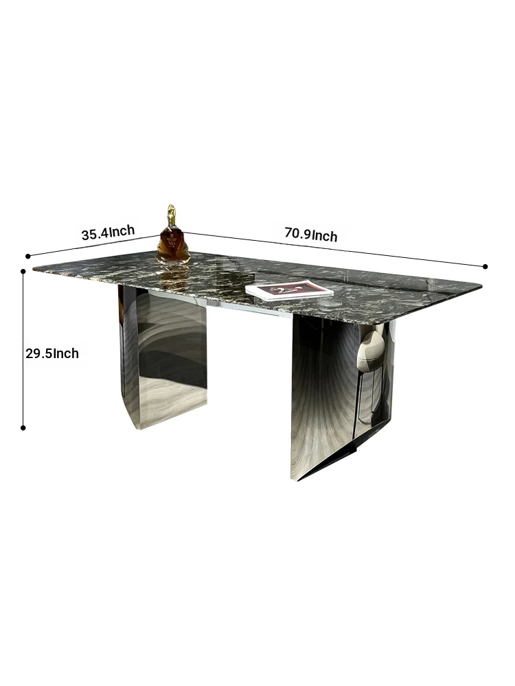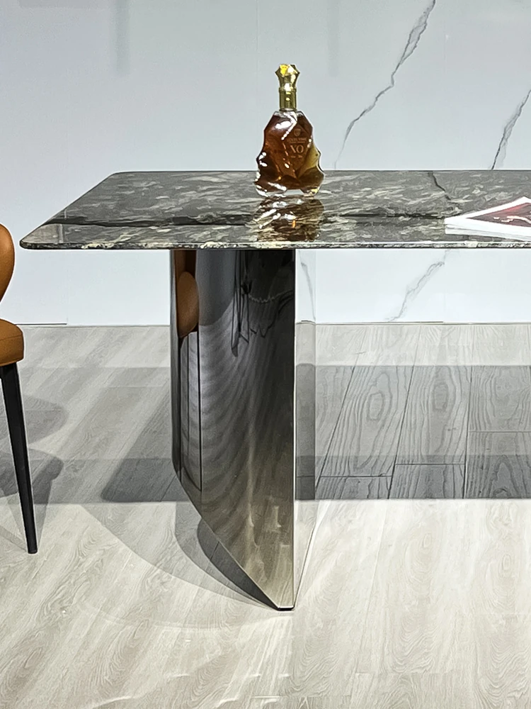 Elegant Modern Rectangular Dining Table with Natural Marble Top and Stainless Steel Legs – Luxurious and Minimalist Design for Home Dining Experience