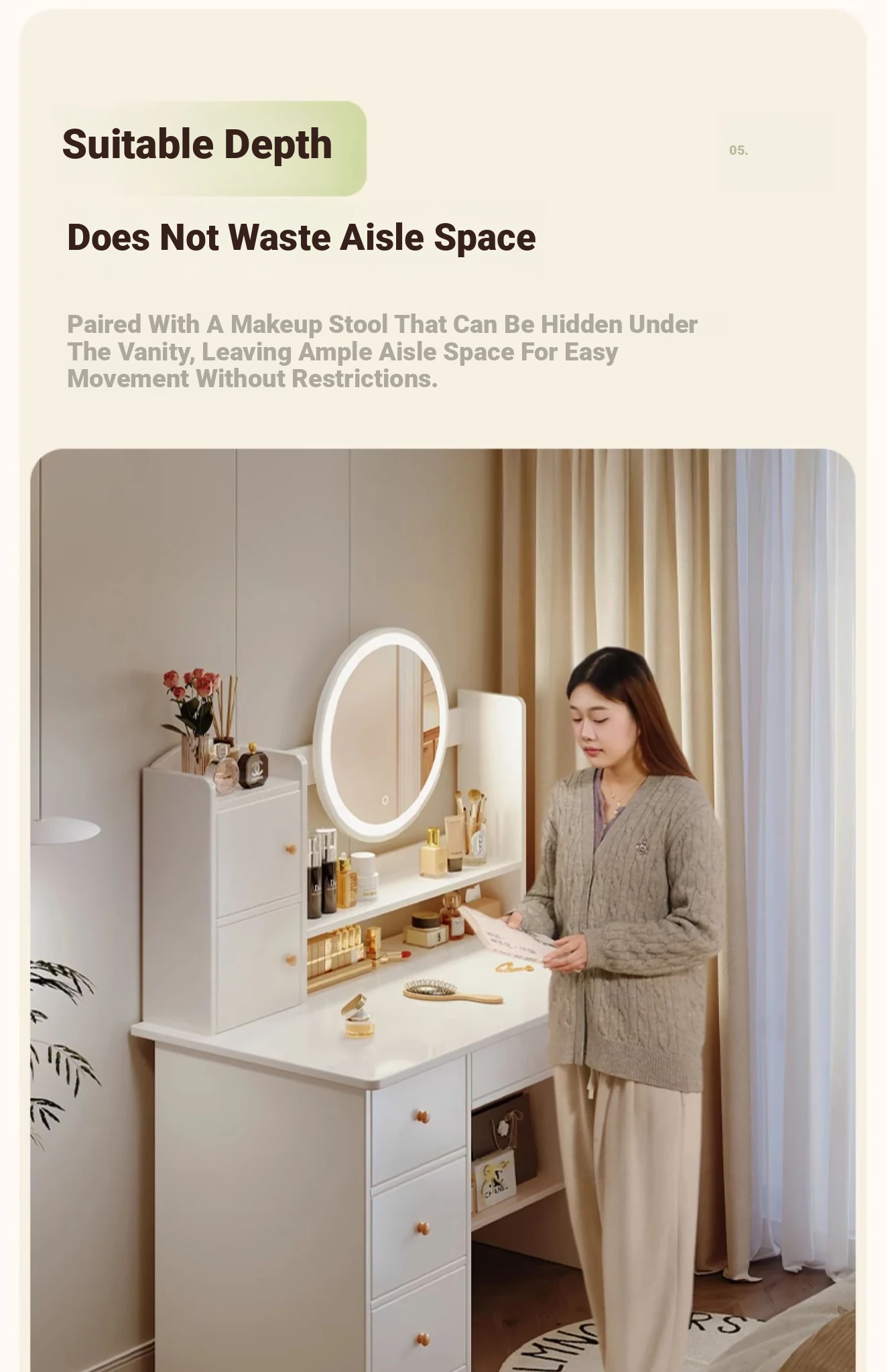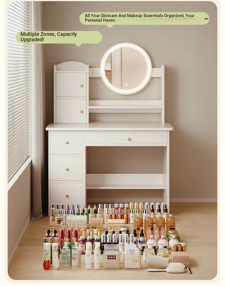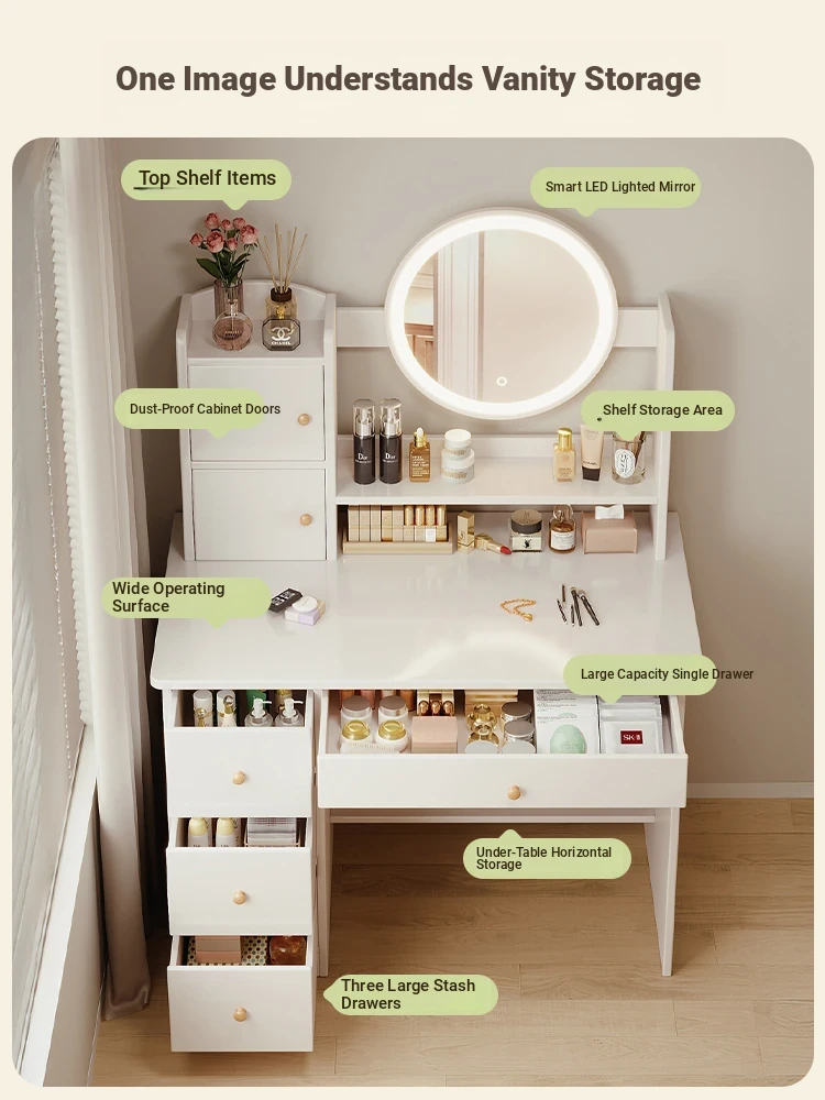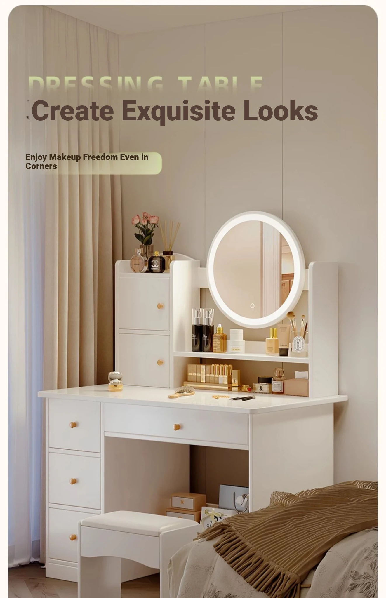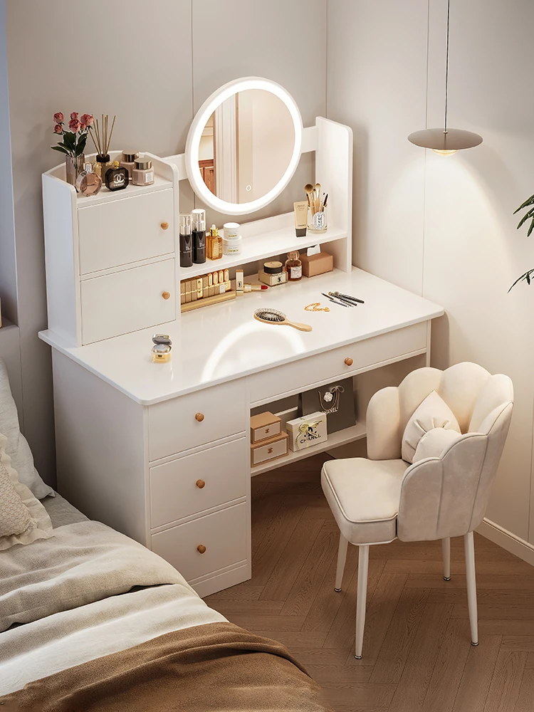 Elegant Modern Vanity Table for Bedroom - 2025 New Design, Compact Makeup Desk with Storage and Writing Surface for Small Spaces