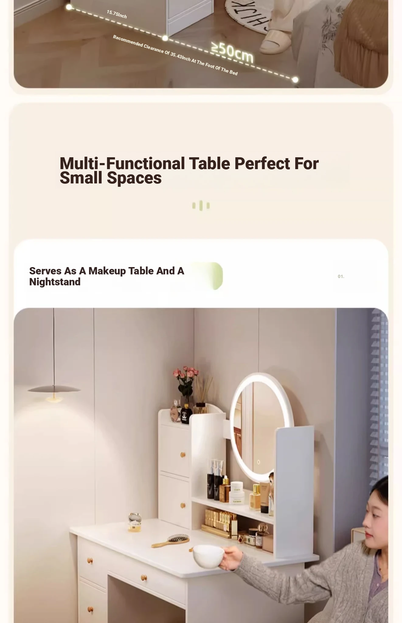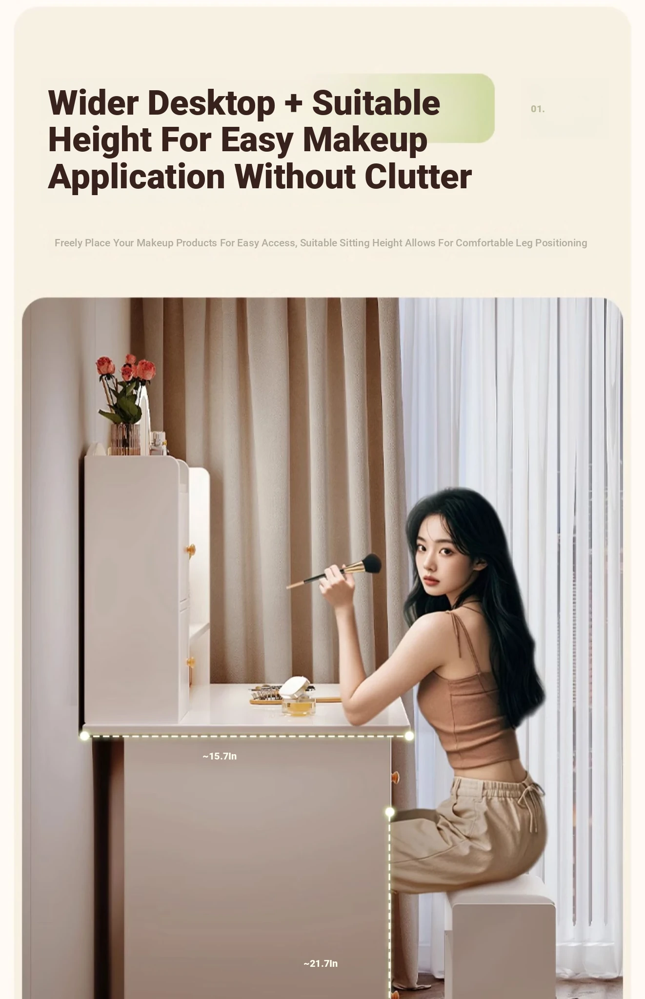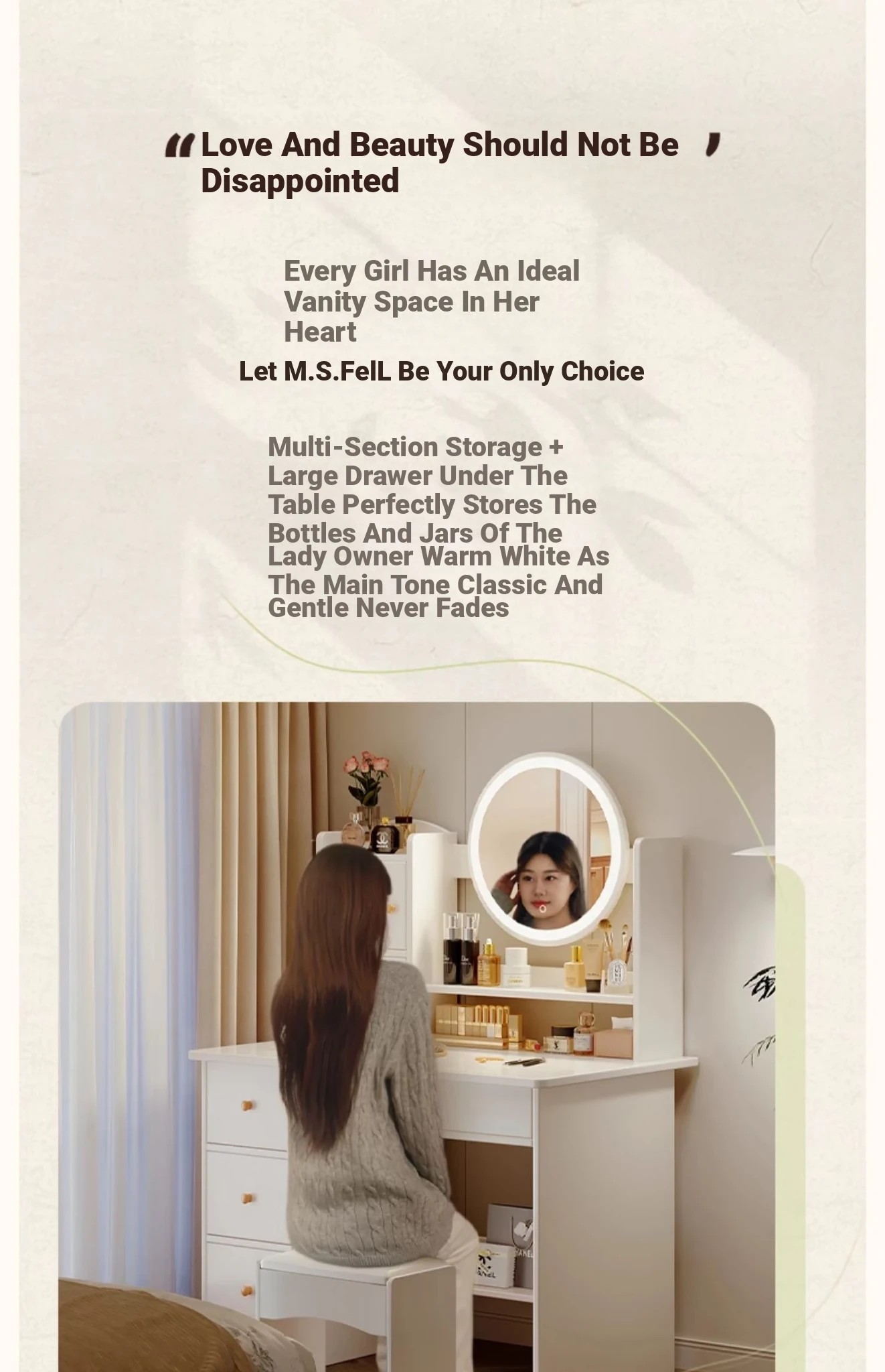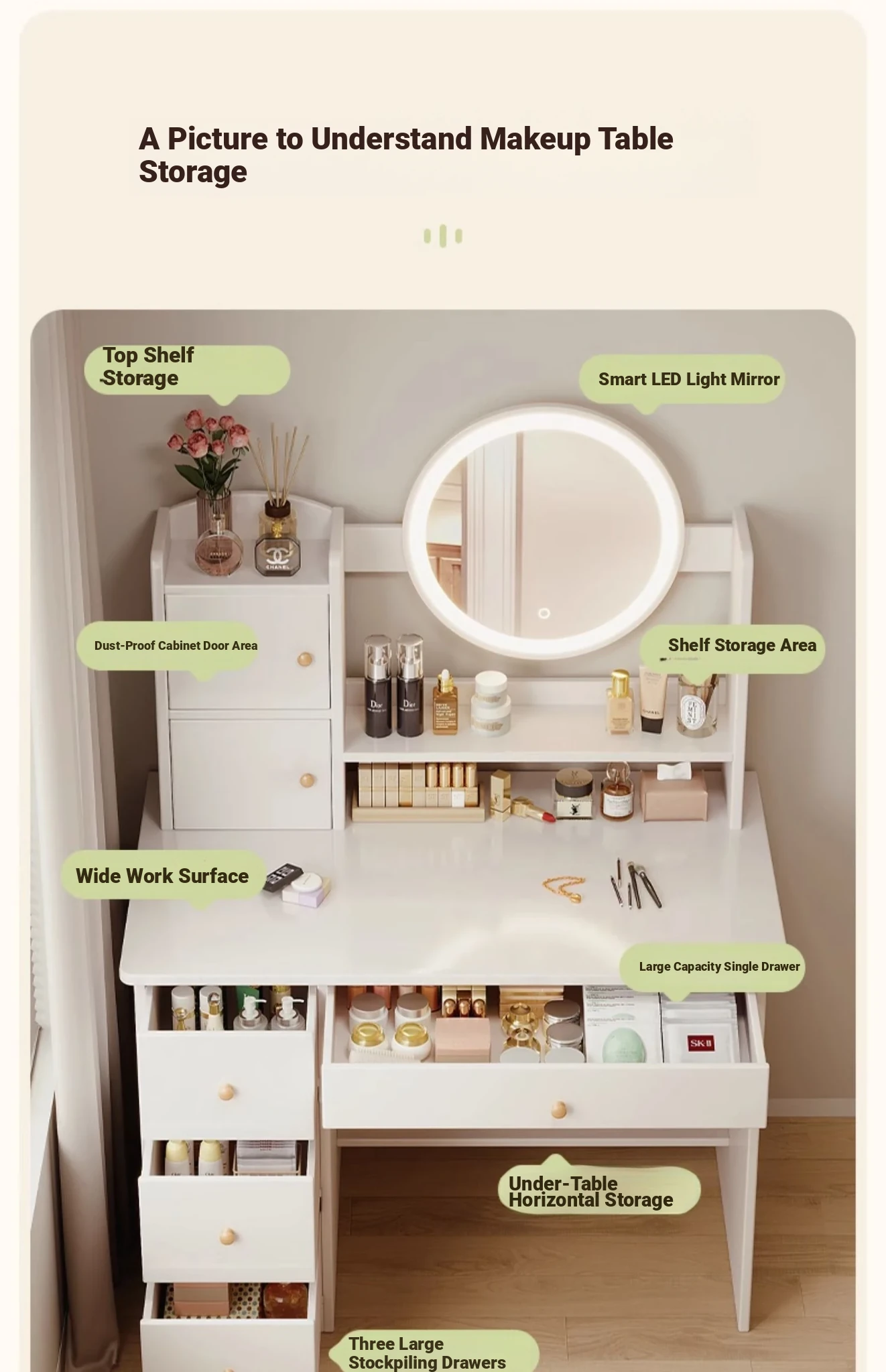 Elegant Modern Vanity Table for Bedroom - 2025 New Design, Compact Makeup Desk with Storage and Writing Surface for Small Spaces