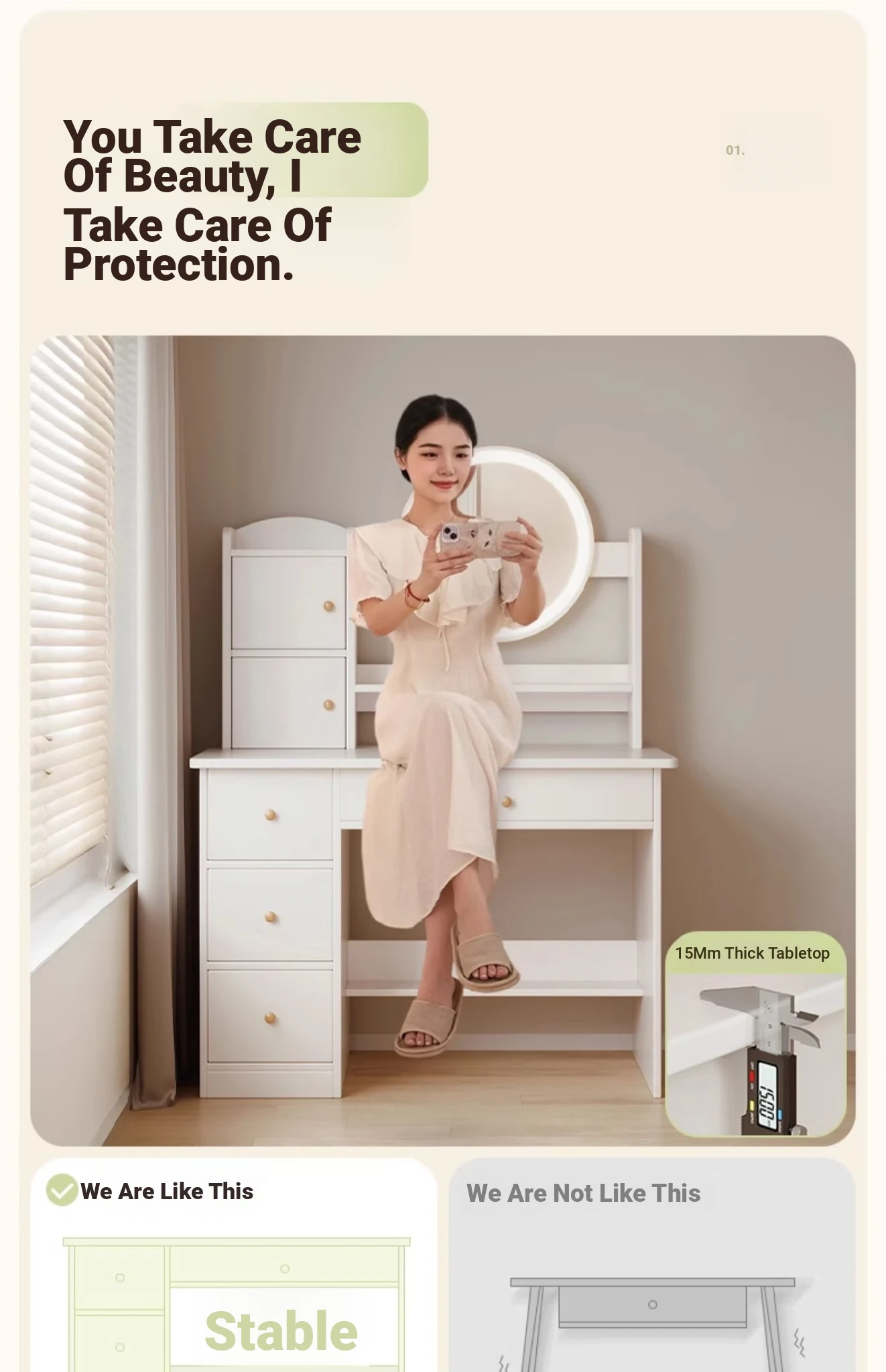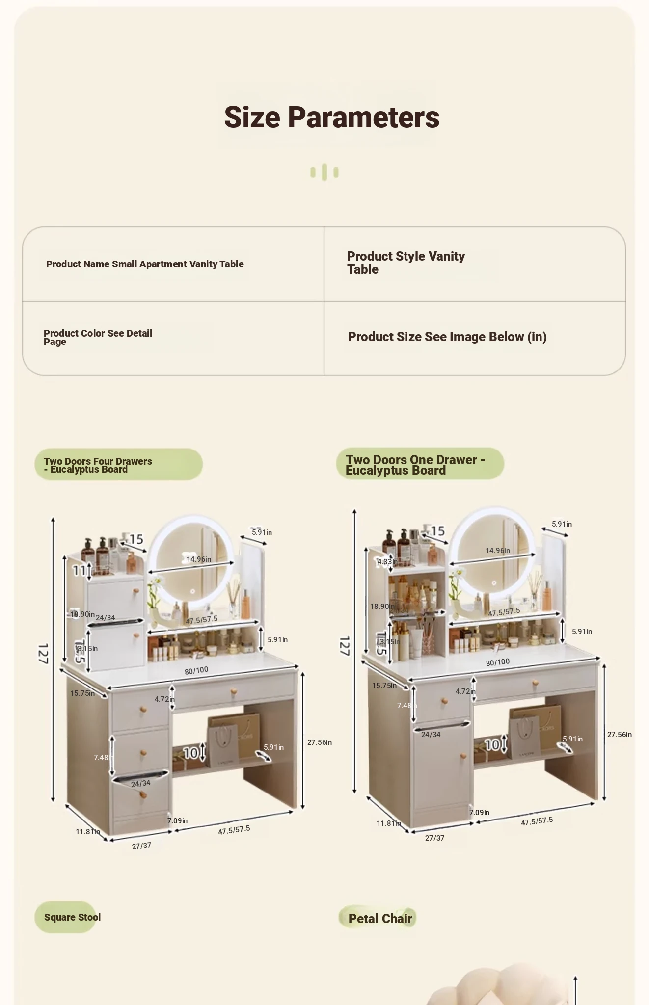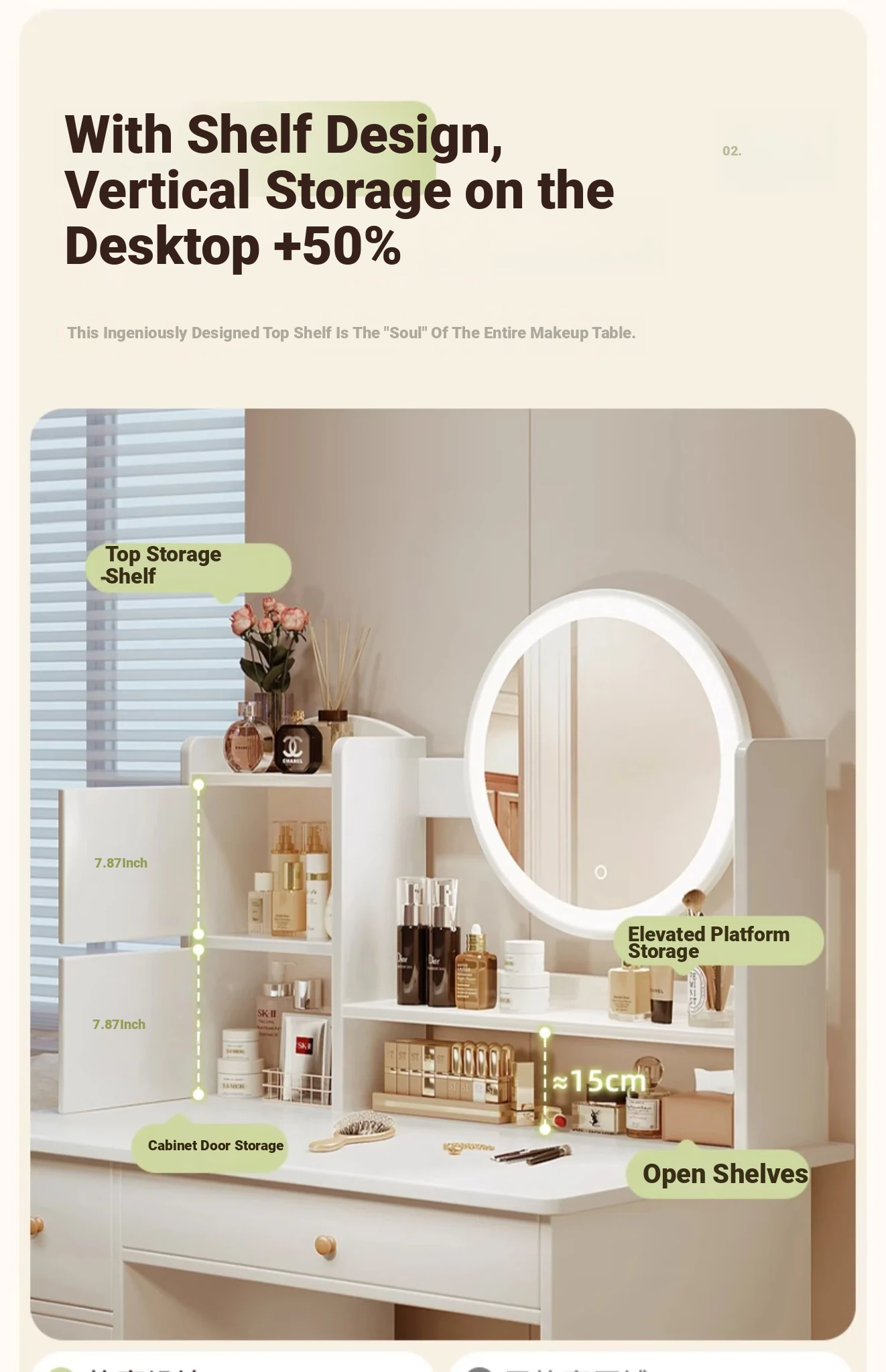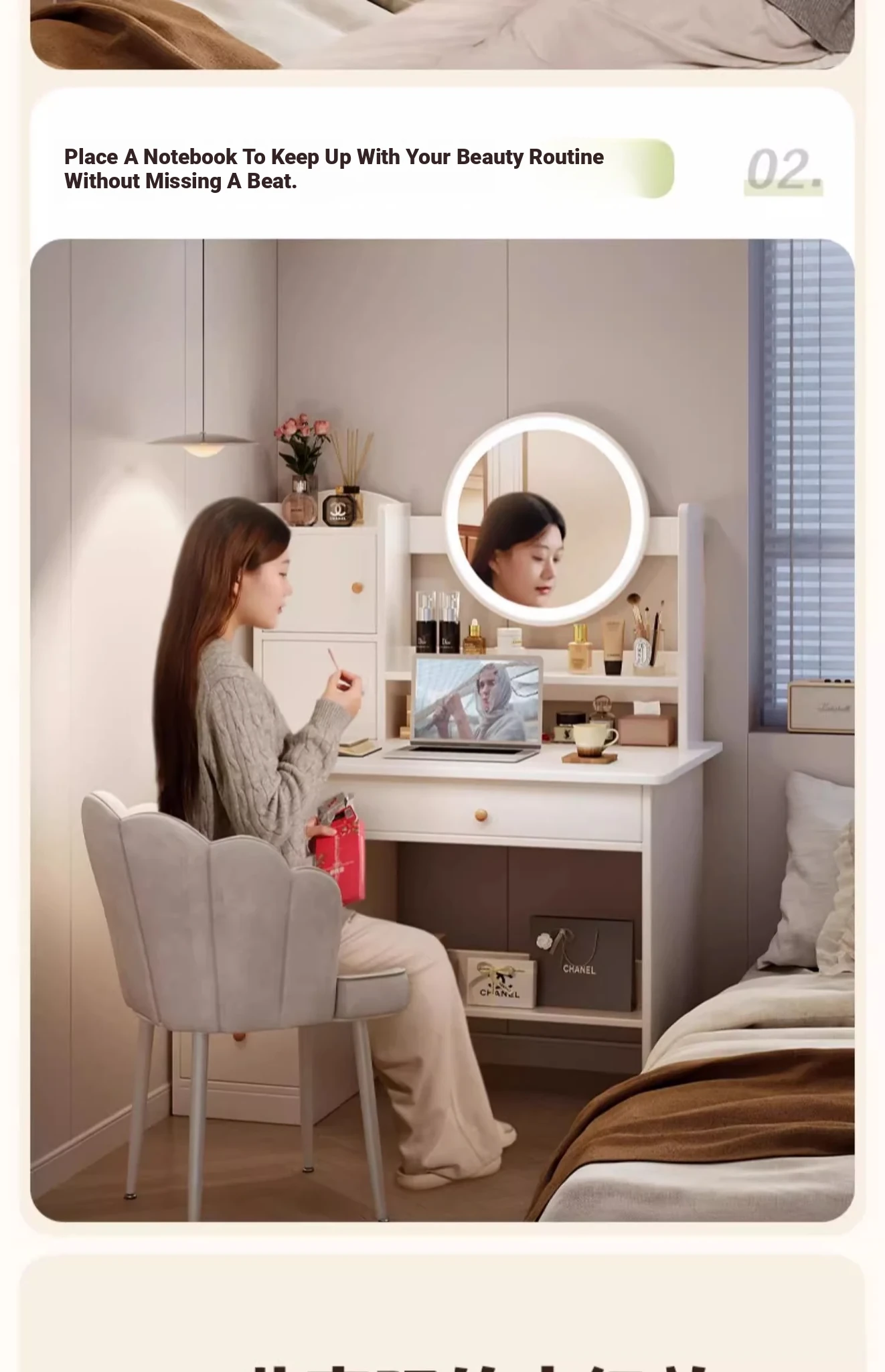 Elegant Modern Vanity Table for Bedroom - 2025 New Design, Compact Makeup Desk with Storage and Writing Surface for Small Spaces