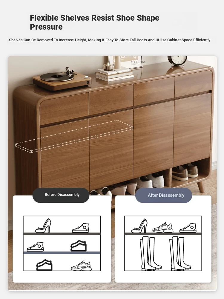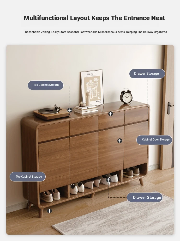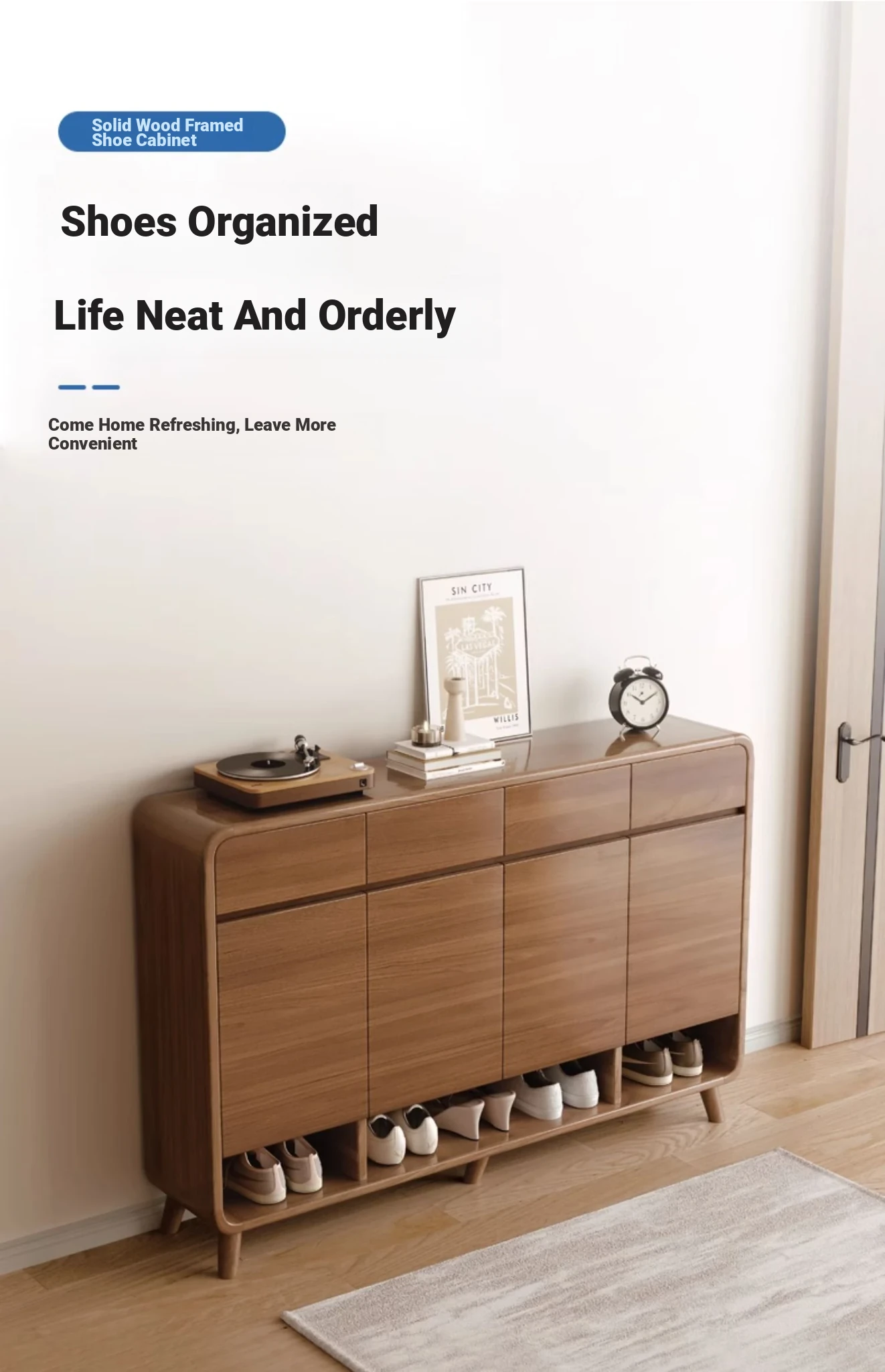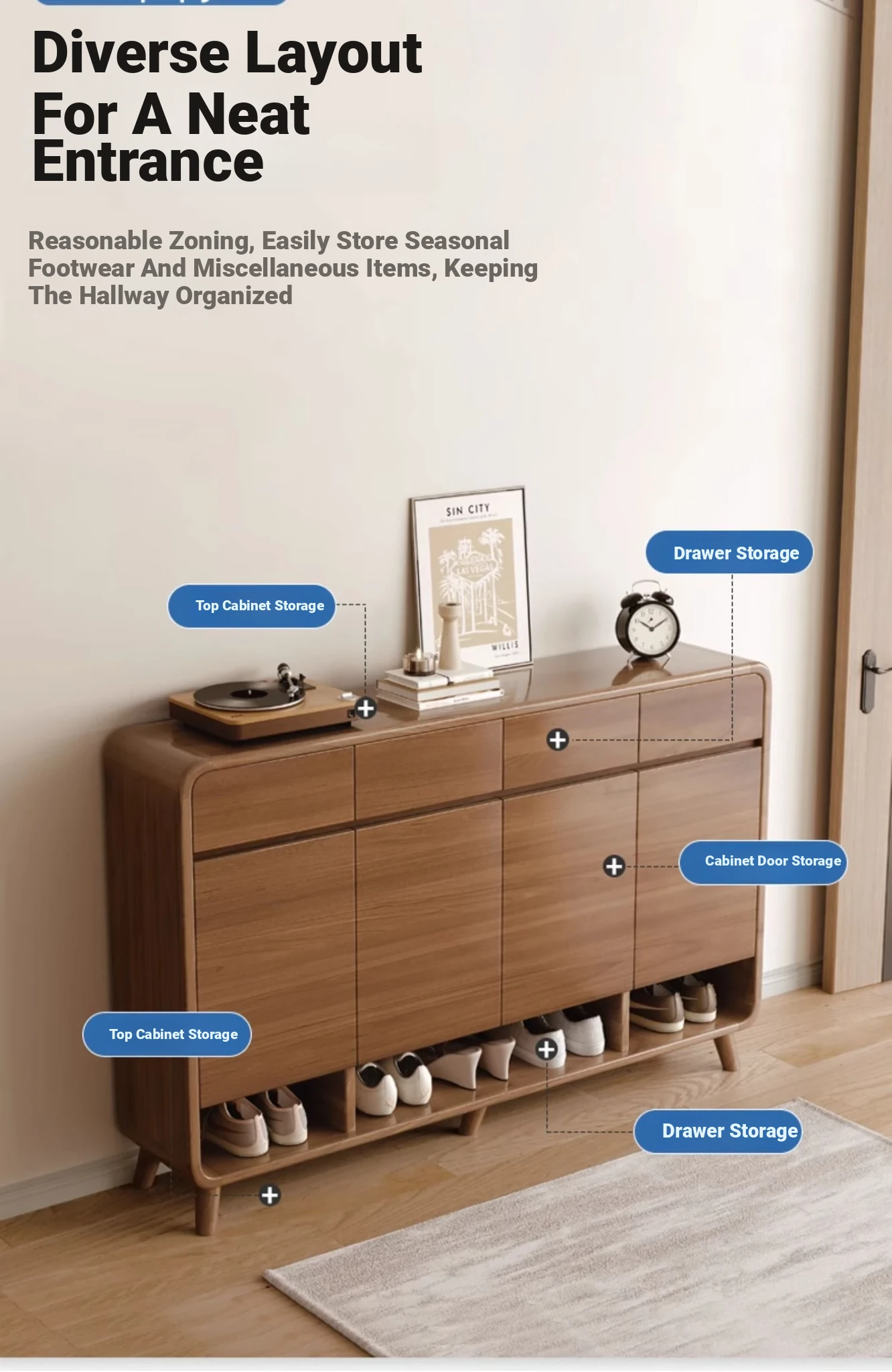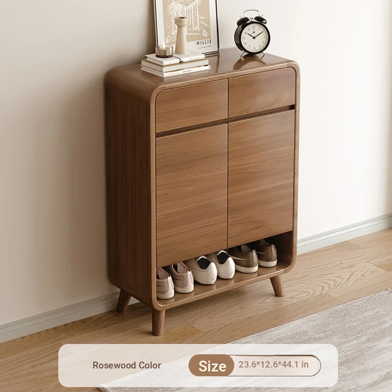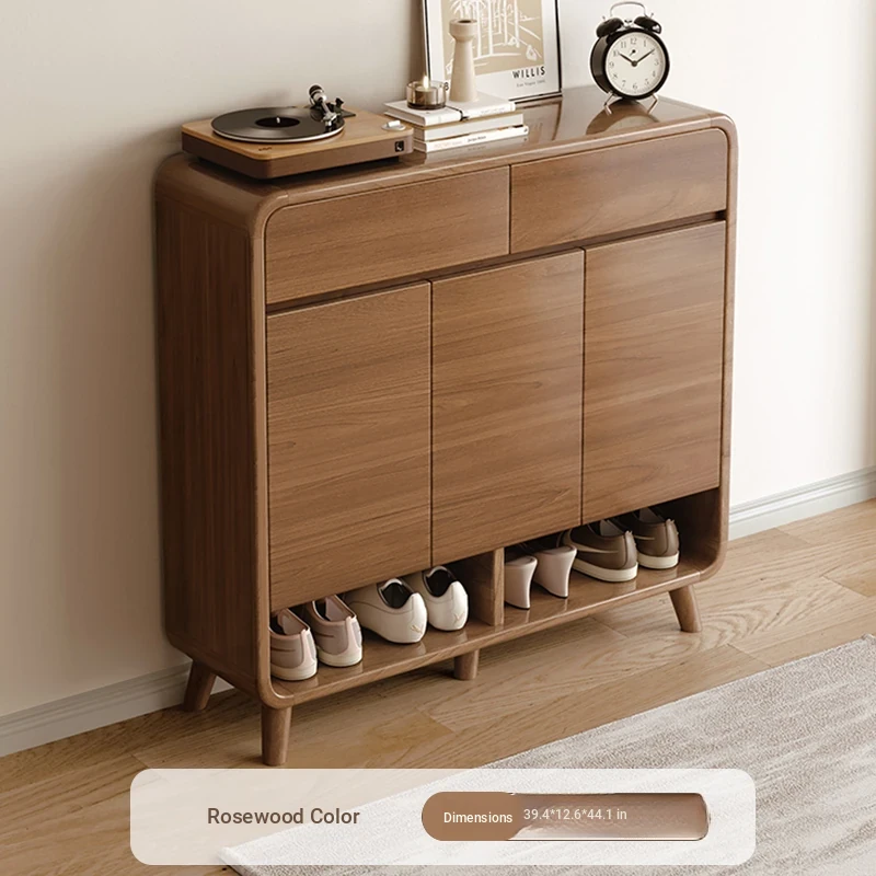Elegant New Chinese Style Shoe Cabinet - Multifunctional Indoor Dustproof Storage Unit, Space-Saving Wall-Mounted Design, Multi-Layer Home Use Solid Wood Shoe Rack for Economical Living Spaces