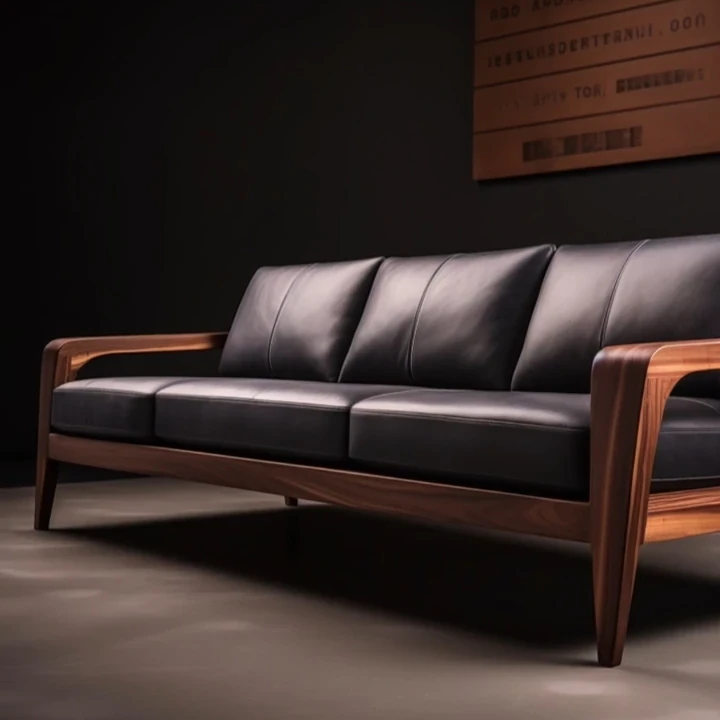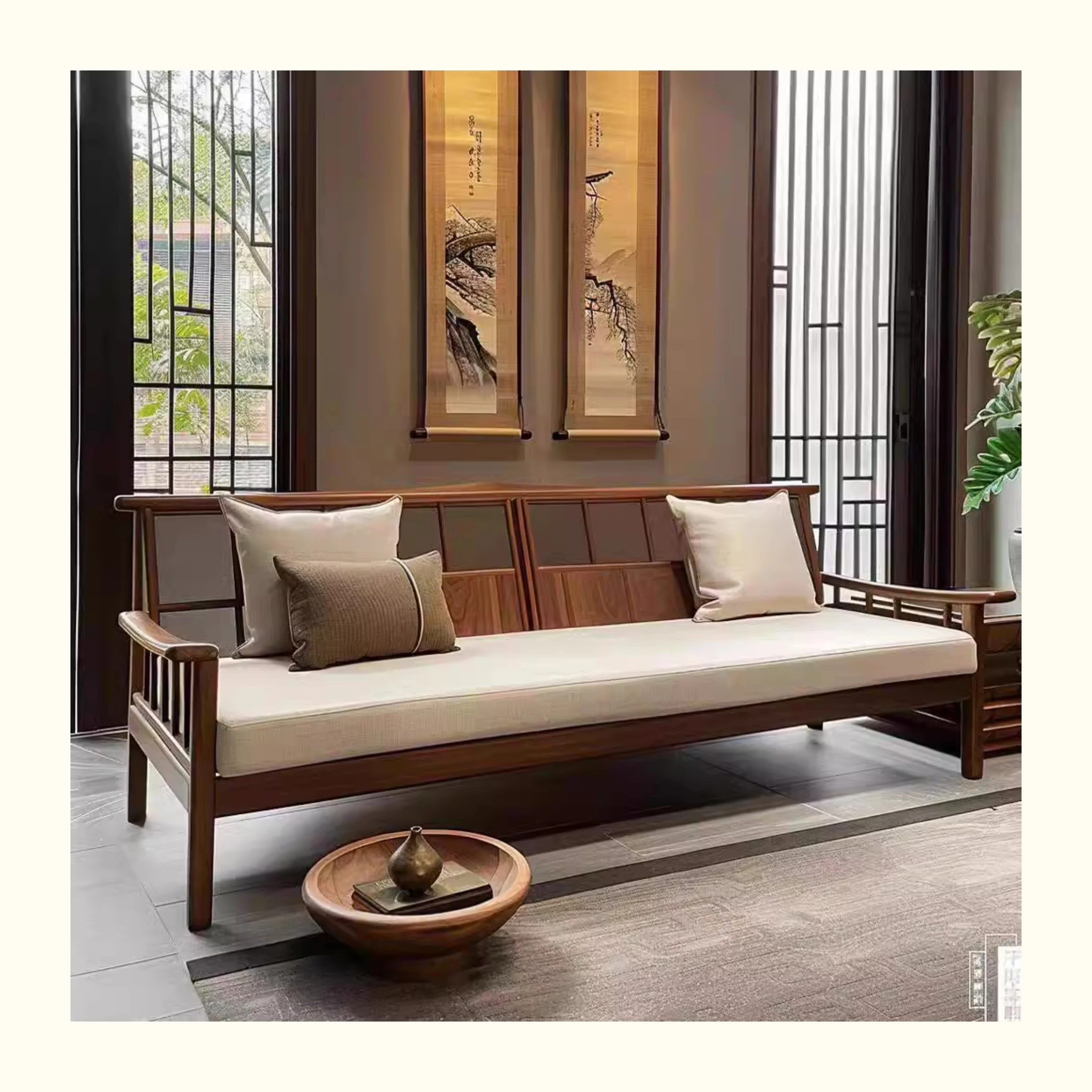 Elegant New Chinese Style Walnut Solid Wood Sofa - High-End Genuine Leather Straight Sofa, Lounger Bed, and Chaise Lounge for Luxurious Living Rooms