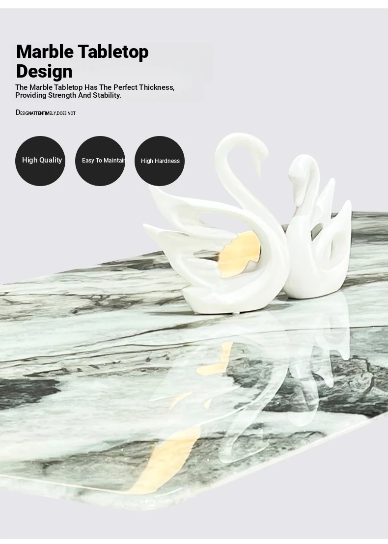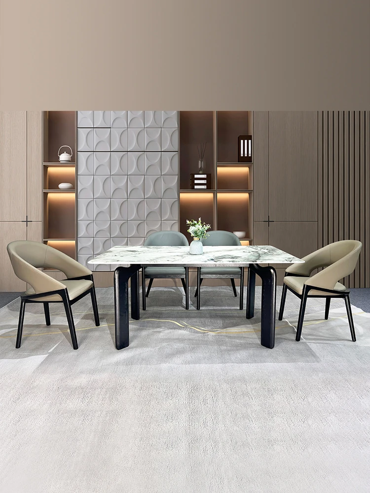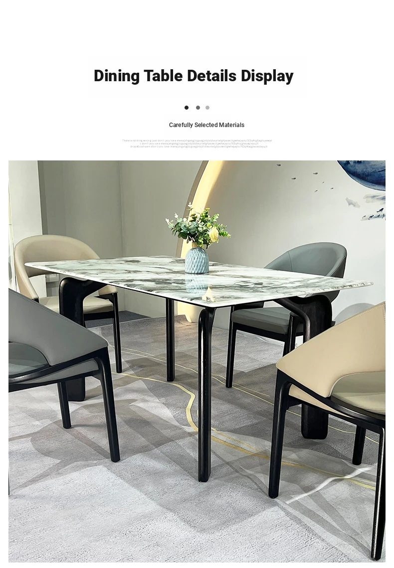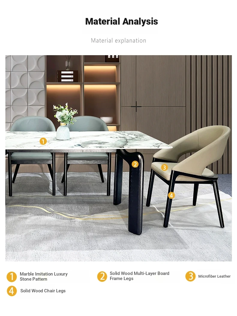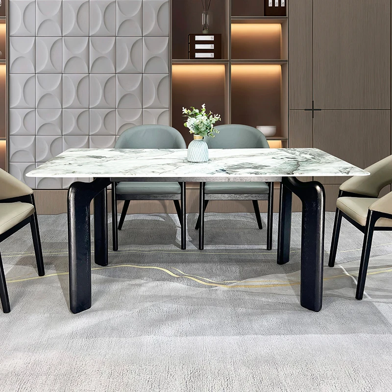 Elegant Rectangular Dining Table Set with Luxury Stone Pattern - Stylish Solid Wood Legs for Home and Villa Dining Experience, Perfect for Upscale Meals