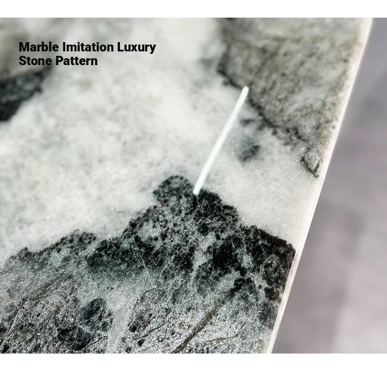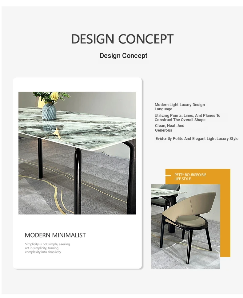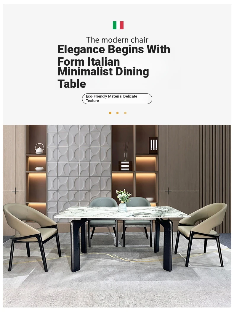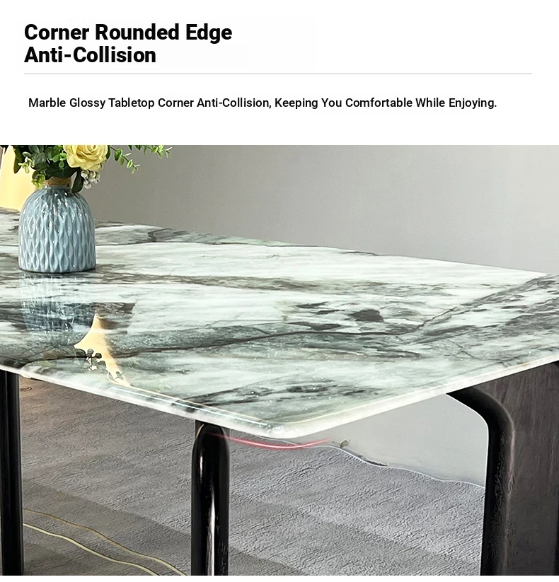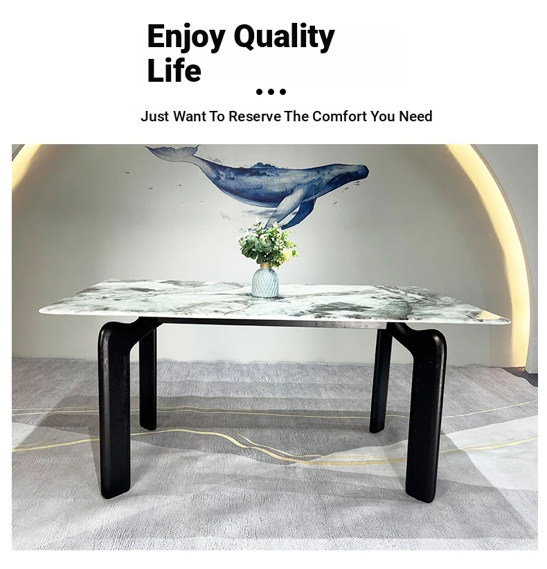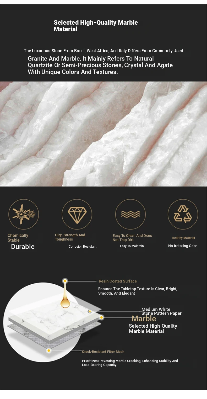 Elegant Rectangular Dining Table Set with Luxury Stone Pattern - Stylish Solid Wood Legs for Home and Villa Dining Experience, Perfect for Upscale Meals