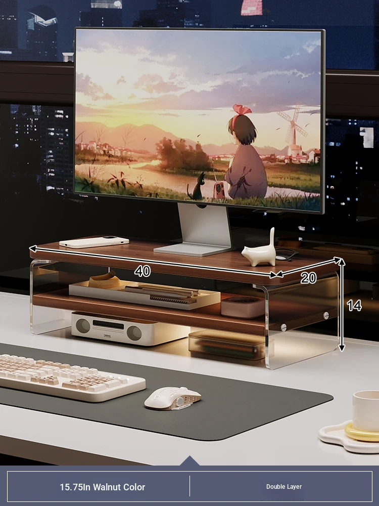 Suspended Acrylic Double Layer-40Cm-Walnut Color