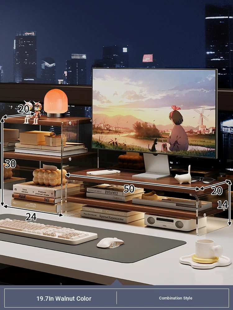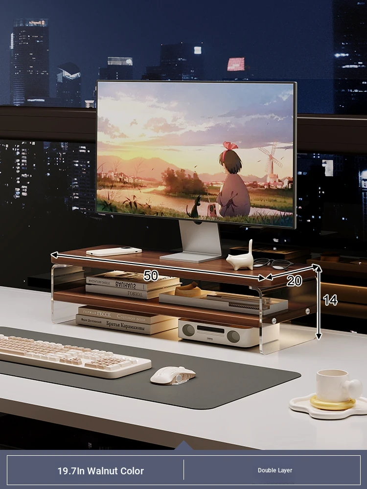 Suspended Acrylic Double Layer-50Cm-Walnut Color