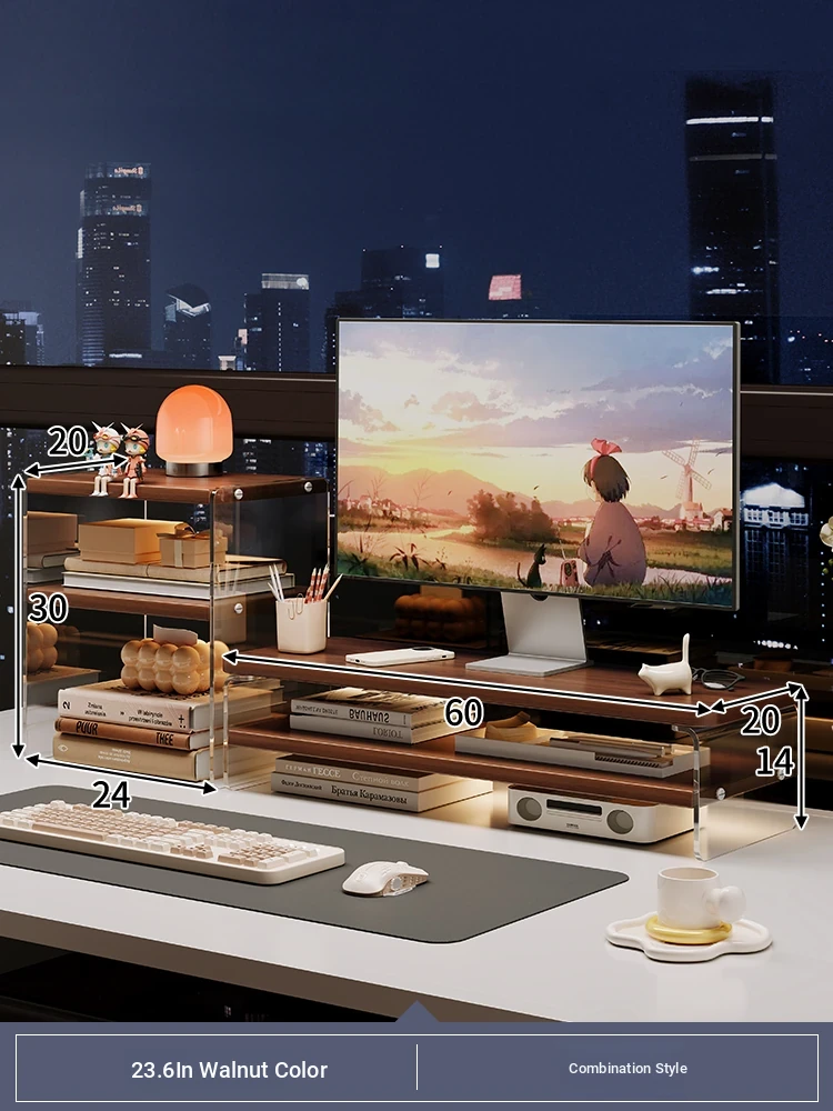Suspended Acrylic Double Layer-60Cm-Walnut Color