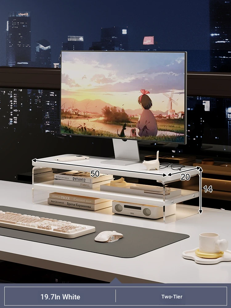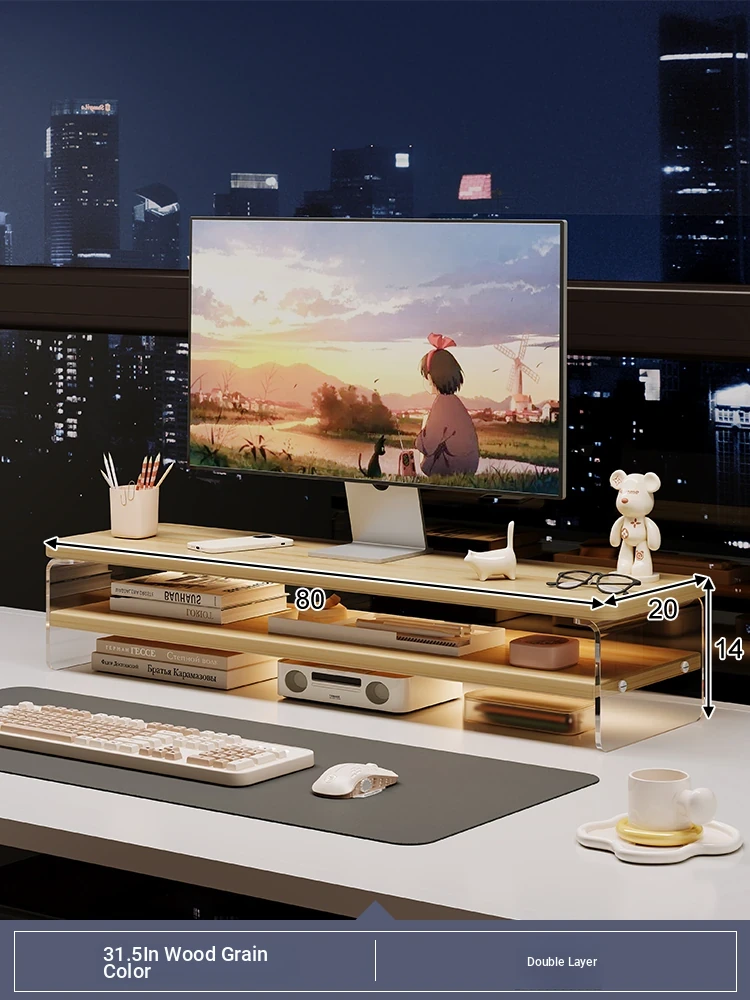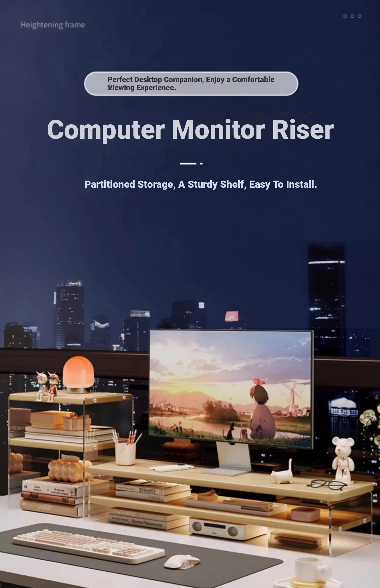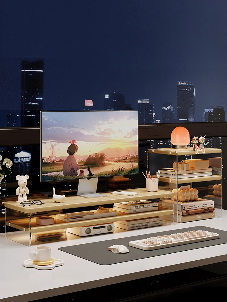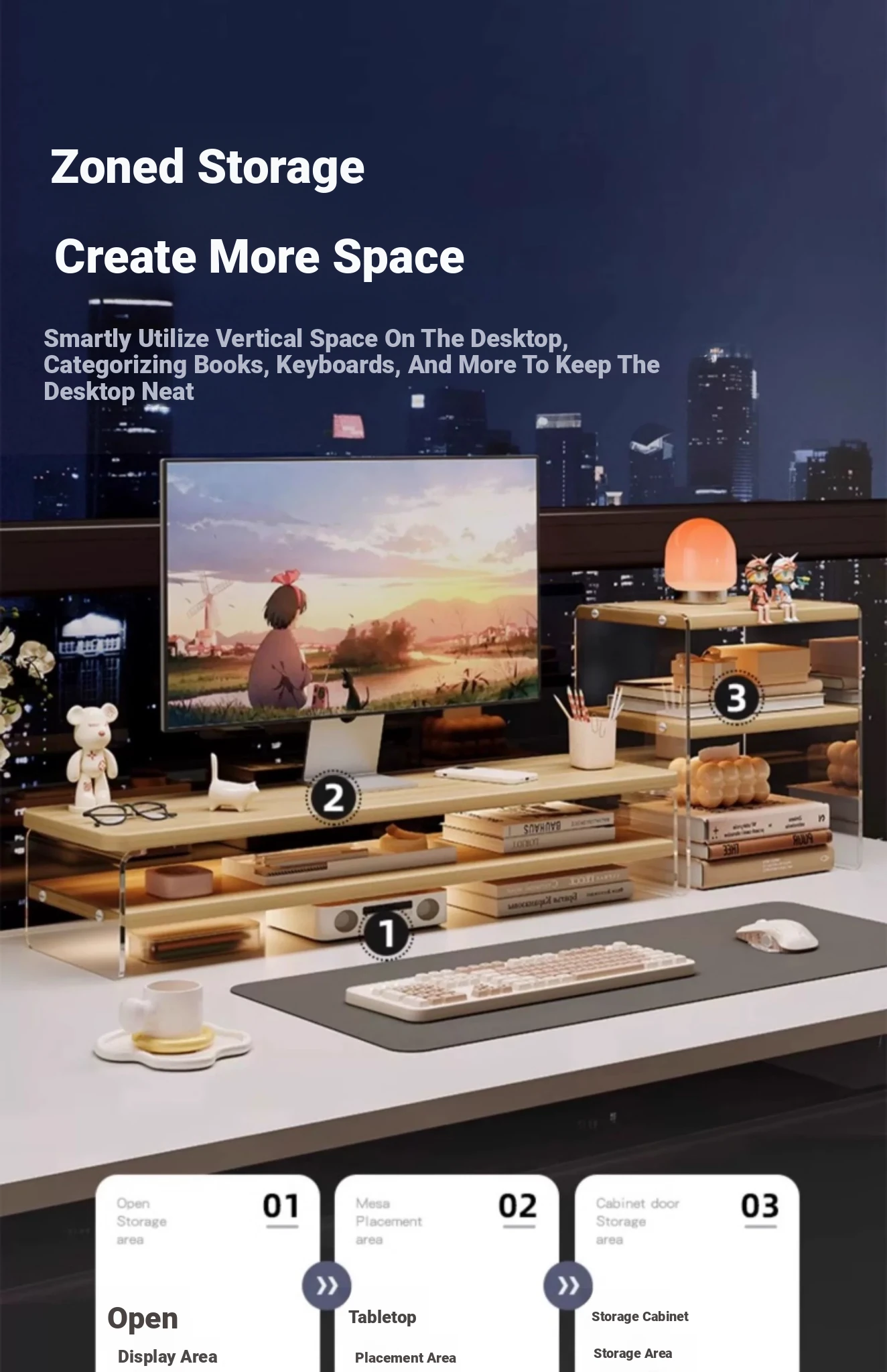 Elevated Desktop Computer Stand with Storage - Multi-functional Monitor and Laptop Holder for Office Desk Organization and Space Expansion
