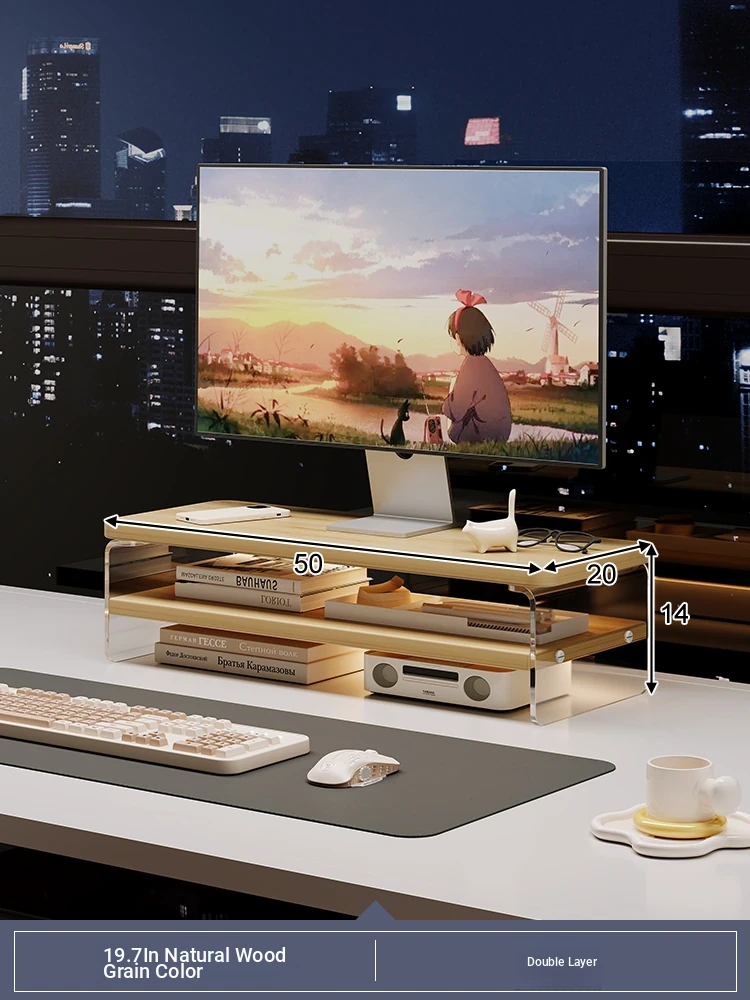 Floating Acrylic Double Layer - 19.69in - Natural Wood Grain Finish