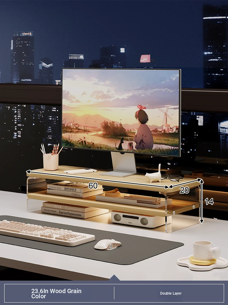 Floating Acrylic Double Layer - 23.62in - Natural Wood Grain Finish