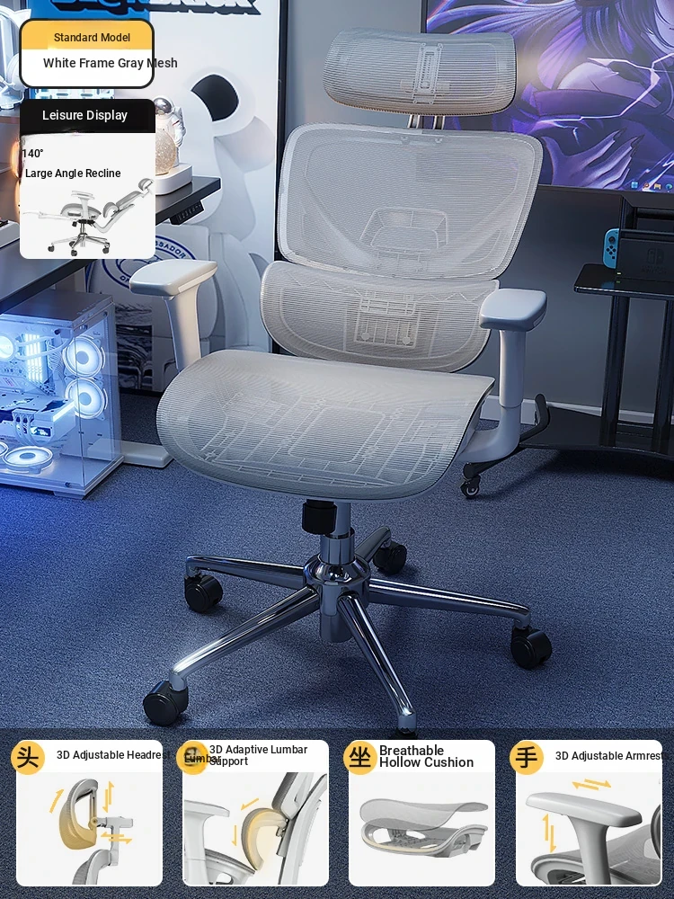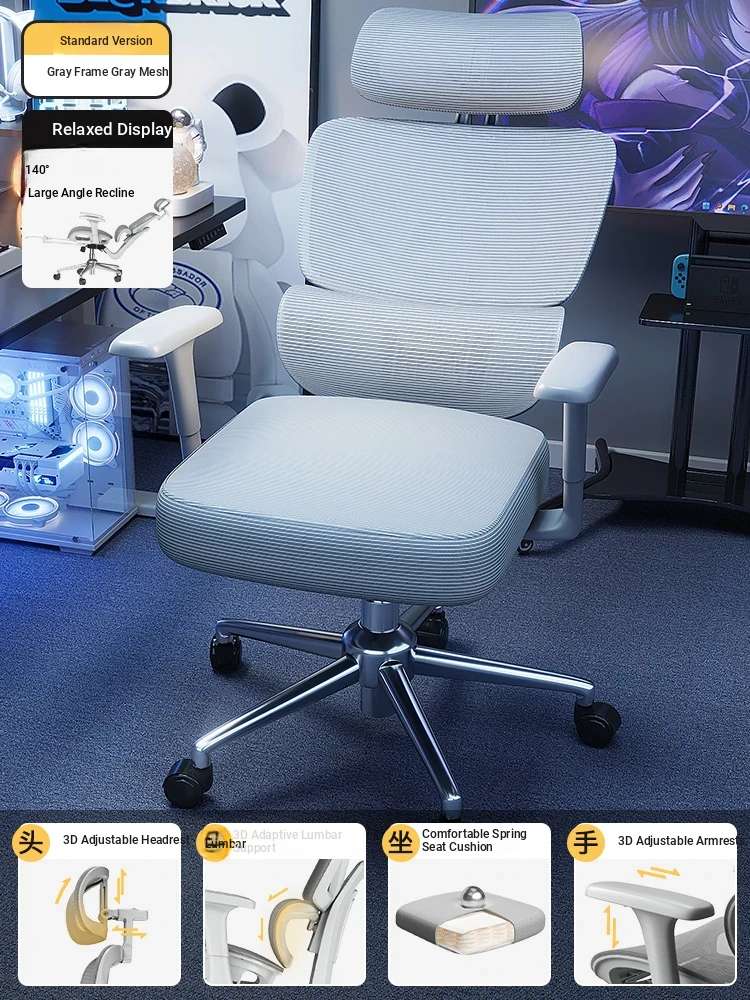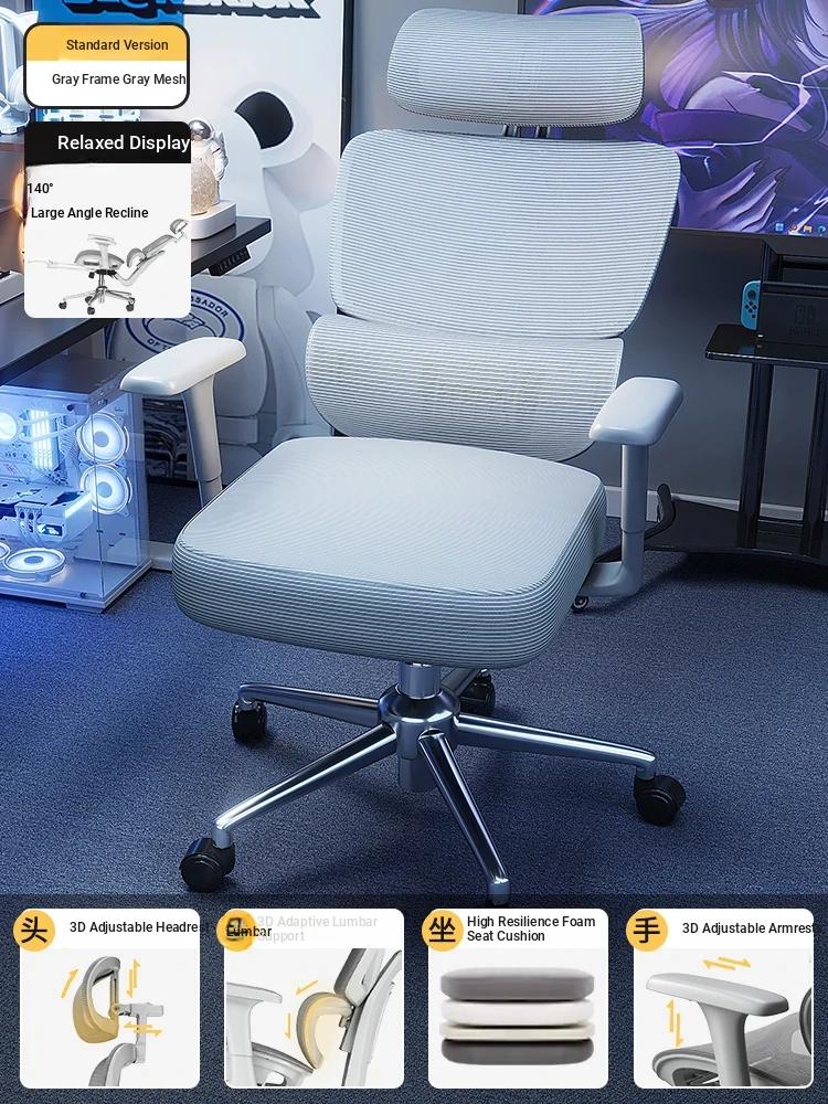 【Door-To-Door Delivery】Pro Upgrade Moonlight White + Adaptive Lumbar Support + 4D Simulated Joint Armrests + 3D Oversized Headrest + Class 4 Gas Lift