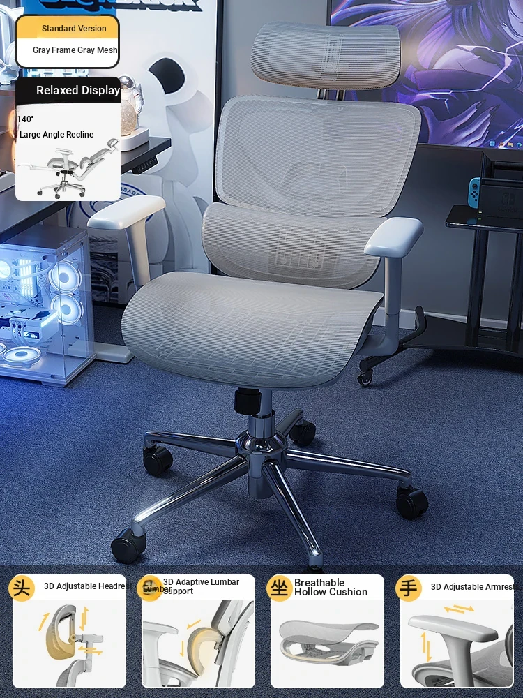 【Not Recoinended】Classic Base Model - Premium Grey + Sponge Cushion + Adaptive Lumbar Support + 4D Simulated Joint Armrests + 3D Oversized Headrest + Class 3 Gas Lift