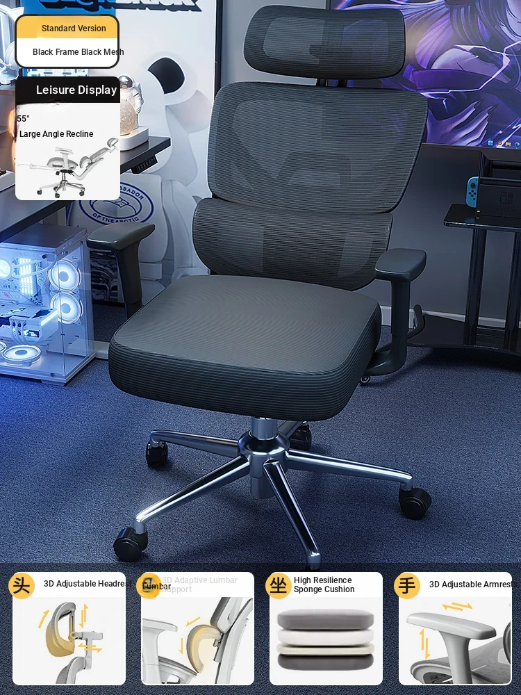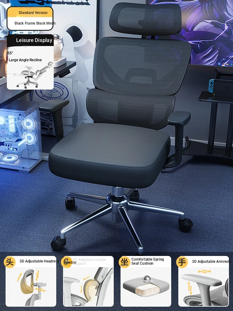 【Not Recoinended】Base Classic Midnight Black + Sponge Cushion + Adaptive Lumbar Support + 4D Simulated Joint Armrests + 3D Oversized Headrest + Class 3 Gas Lift