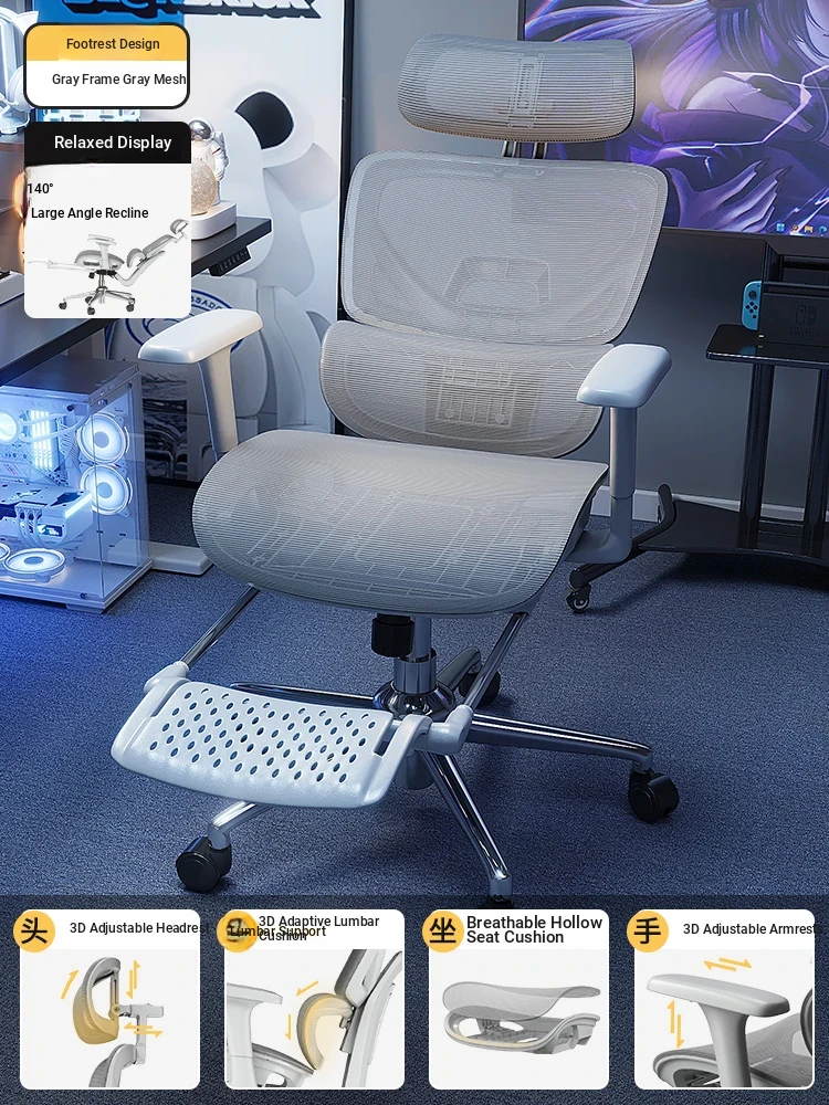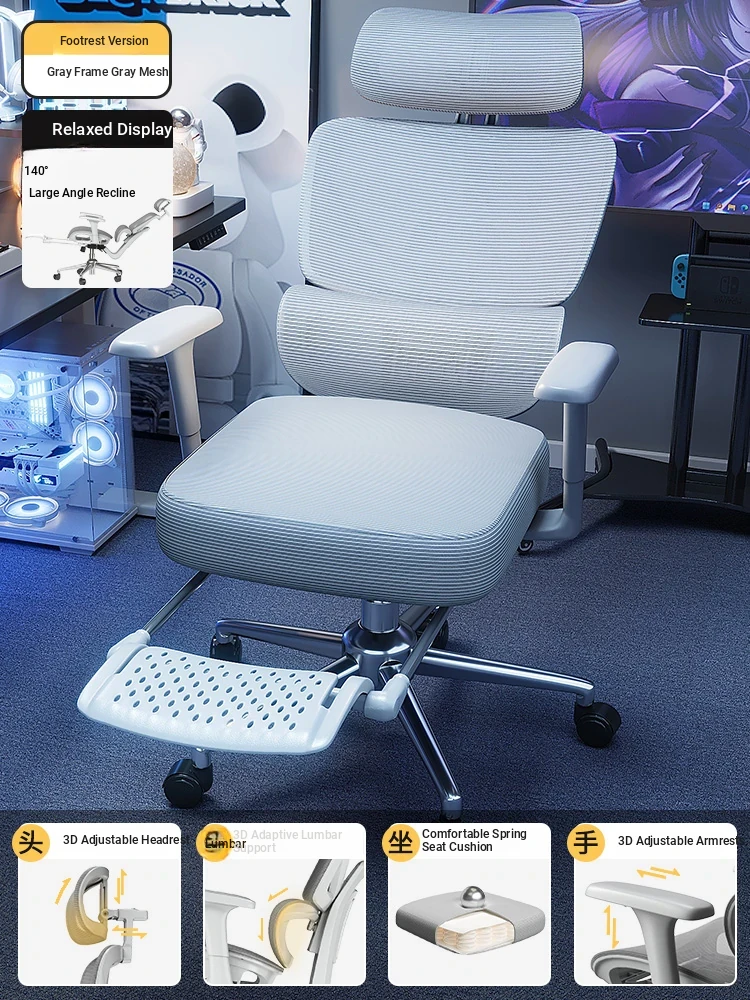【Door-To-Door Delivery】Pro Upgrade - Premium Grey + Adaptive Lumbar Support + 4D Simulated Joint Armrests + 3D Extended Headrest + Footrest + Level 4 Gas Lift
