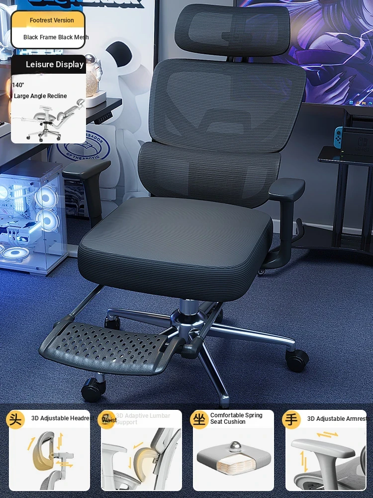 [Door-To-Door Delivery] Air Comfortable Model in Night Black + Spring Seat Bag + Adaptive Lumbar Support + 4D Imitation Joint Armrest + 3D Enlarged Headrest + Foot Rest + 4-Level Air Rod