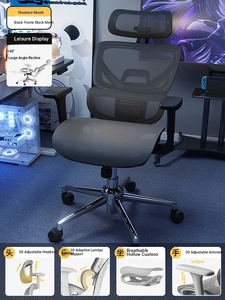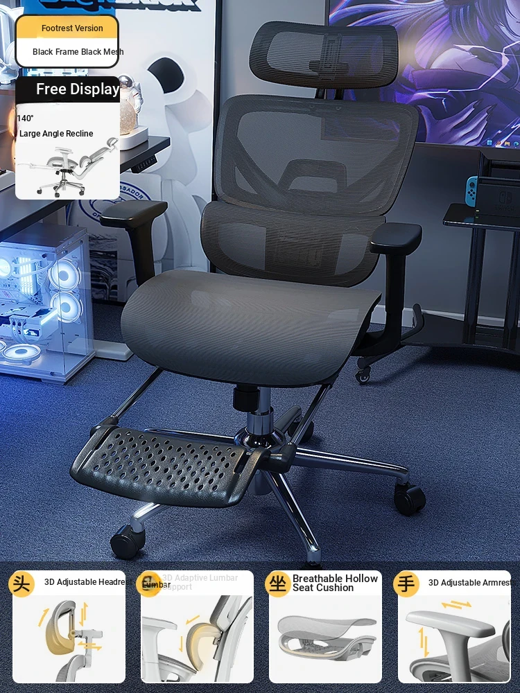 [Door-To-Door Delivery] Pro Upgraded Model in Black + Adaptive Lumbar Support + 4D Imitation Joint Armrest + 3D Enlarged Headrest + Foot Rest + 4-Level Air Rod