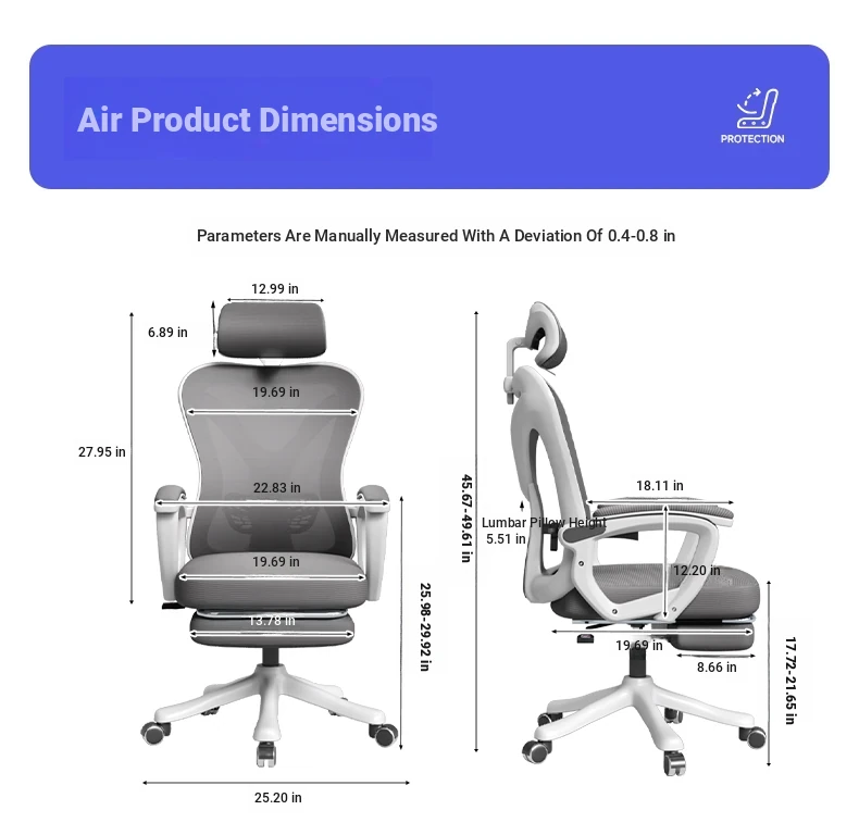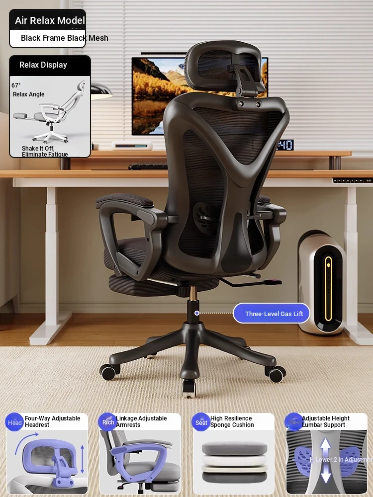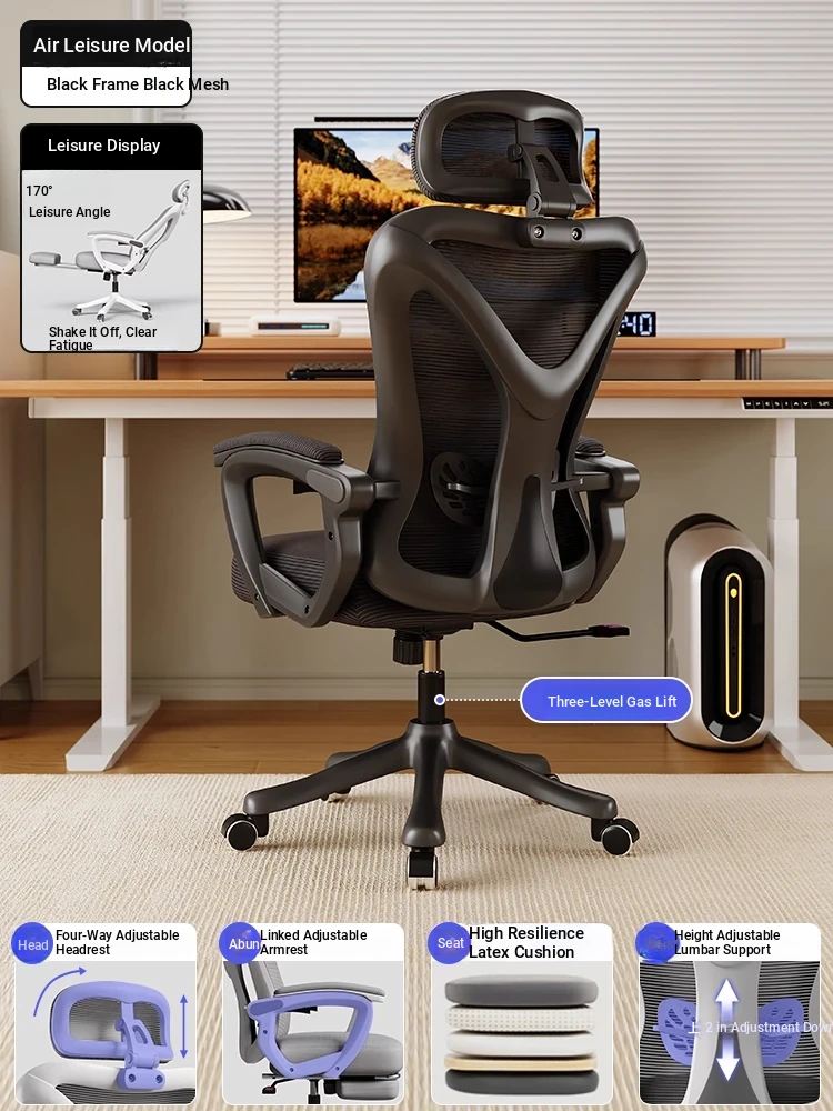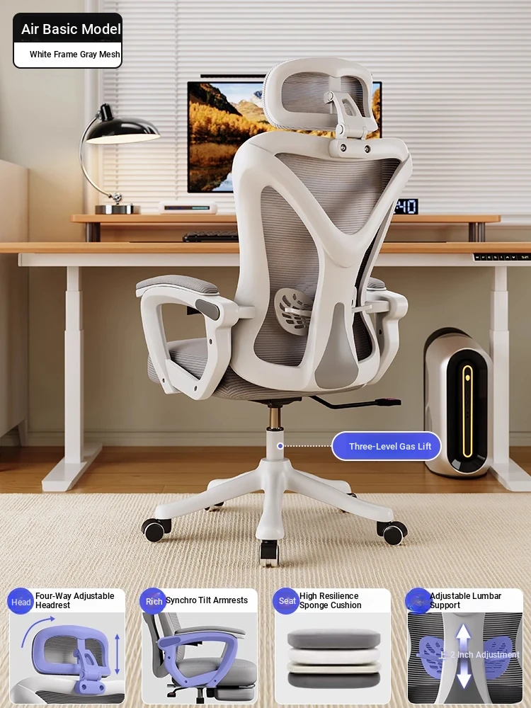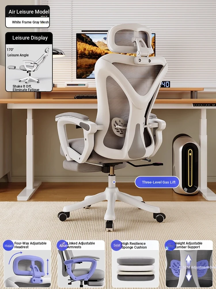 [Luxury Model] Sponge Cushion | Xuanmu Gray | 135 ° Can Lie down | No Footrest | Three-Stage Air Rod | Adjustable Lumbar Support