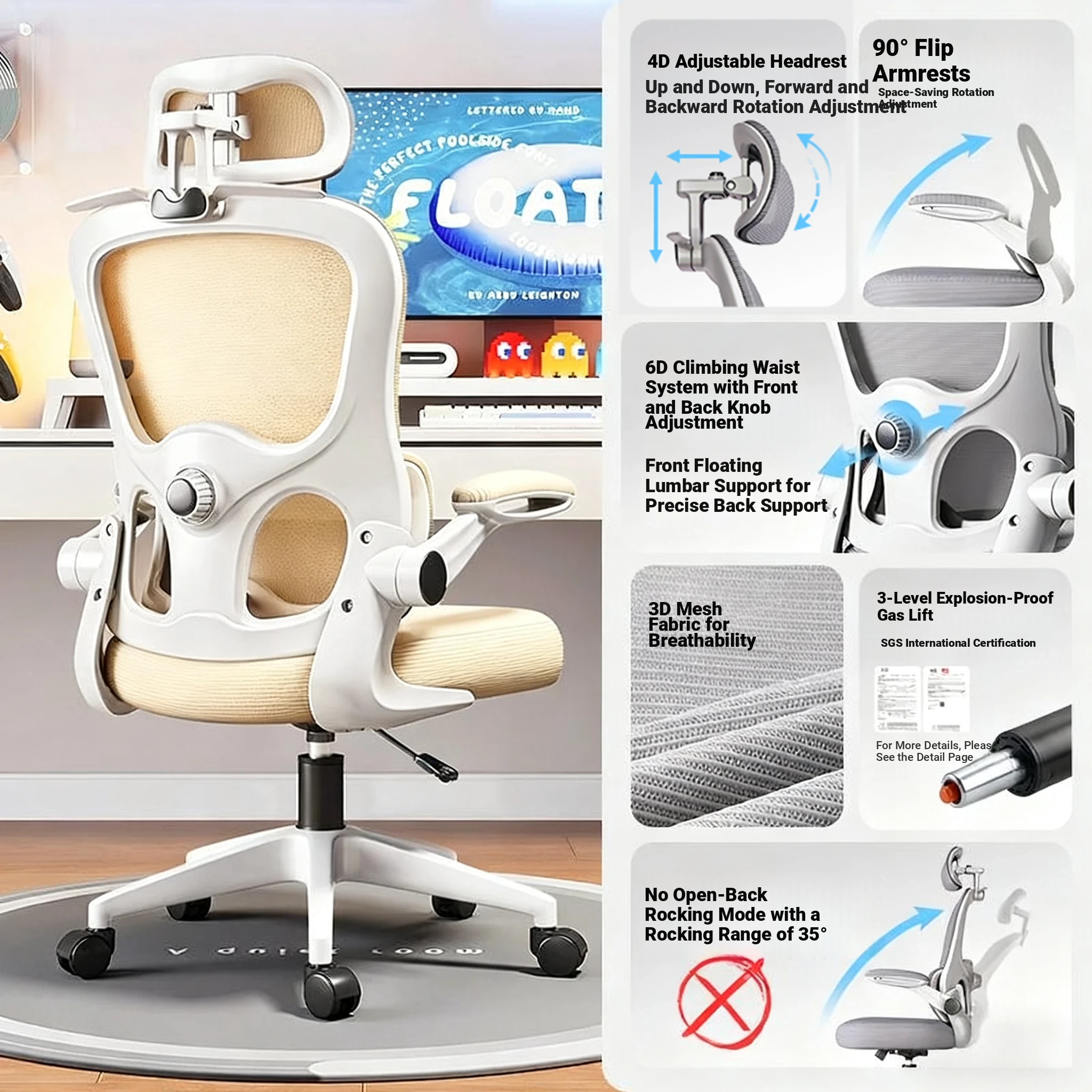 [Luxury Model] Sponge Cushion|Vanilla Rice|135°Can Lie down|No Footrest|Three-Stage Air Rod|Adjustable Lumbar Support