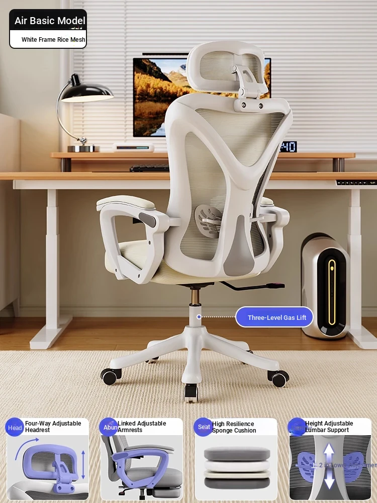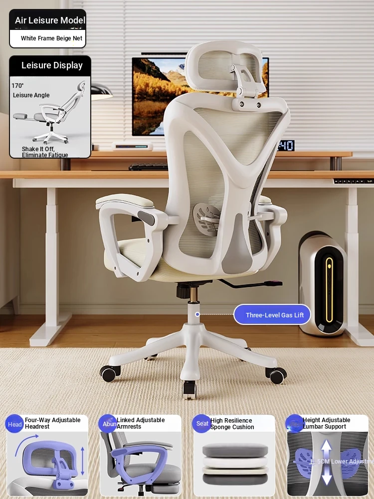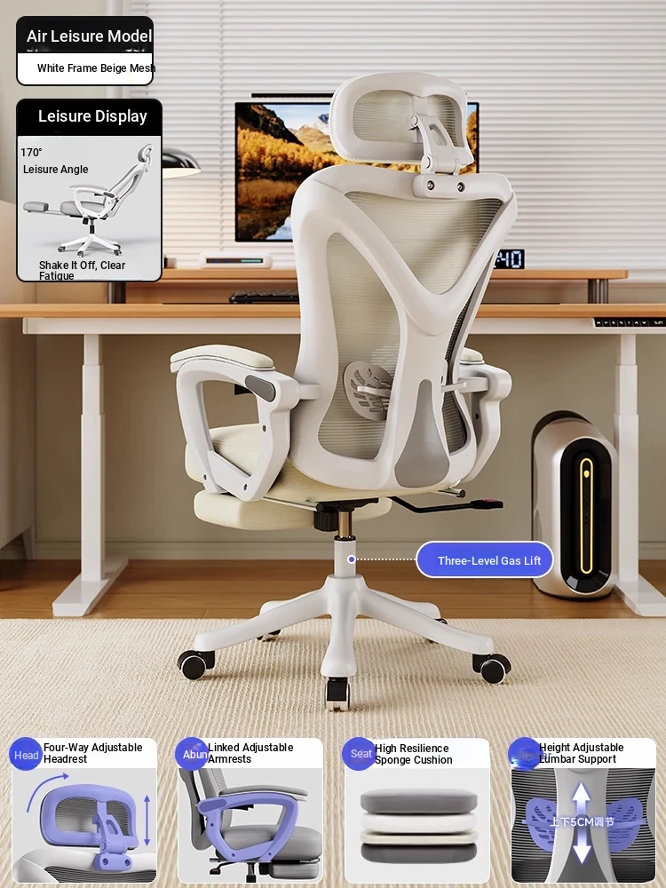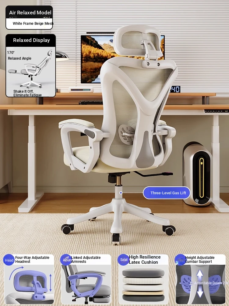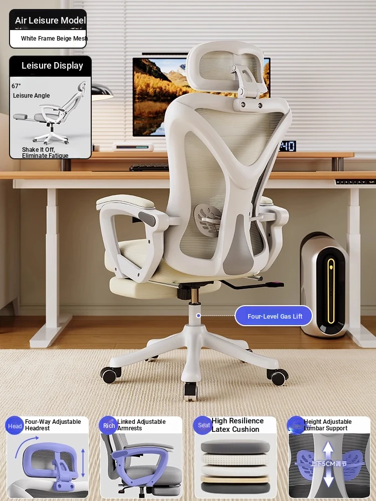 [Flagship Model] Latex Cushion | Vanilla Rice | 【135 ° Can Lie down +35 ° Xiaoyao] | With Footrest | Four-Stage Gas Spring | Adjustable Lumbar Support