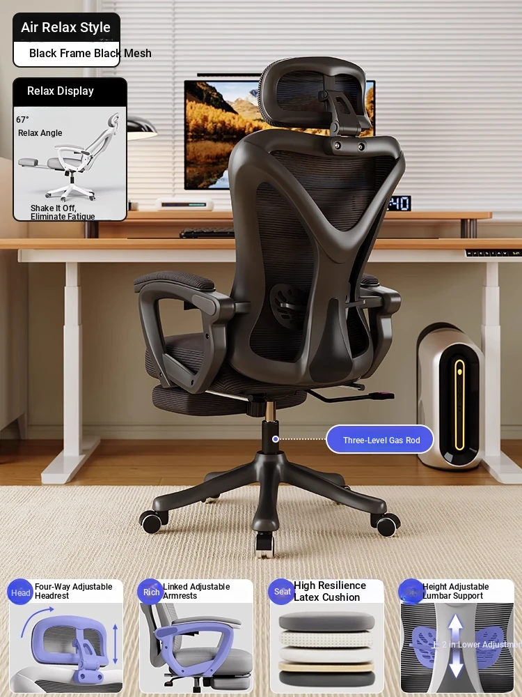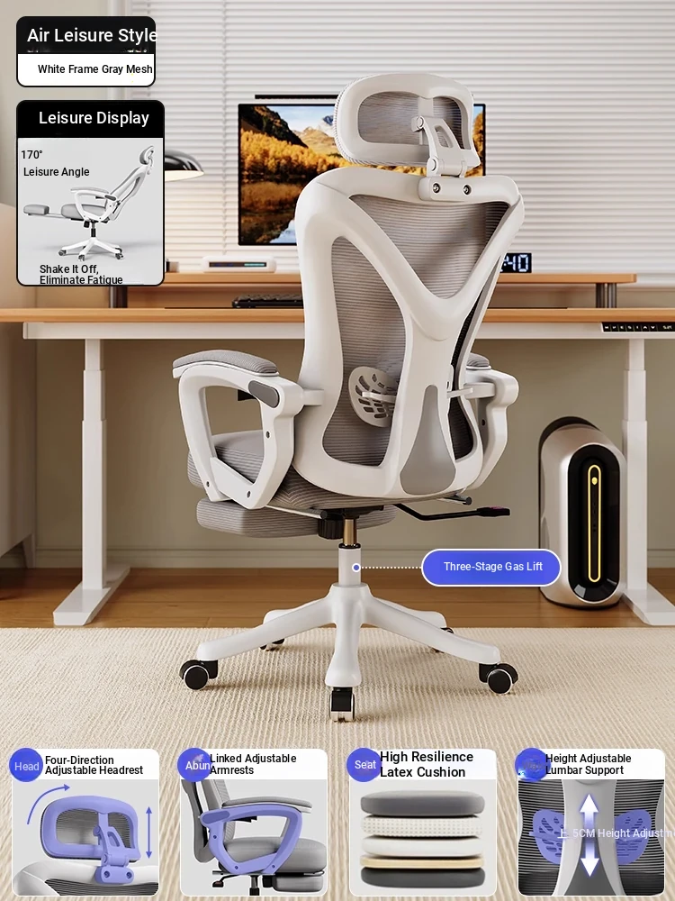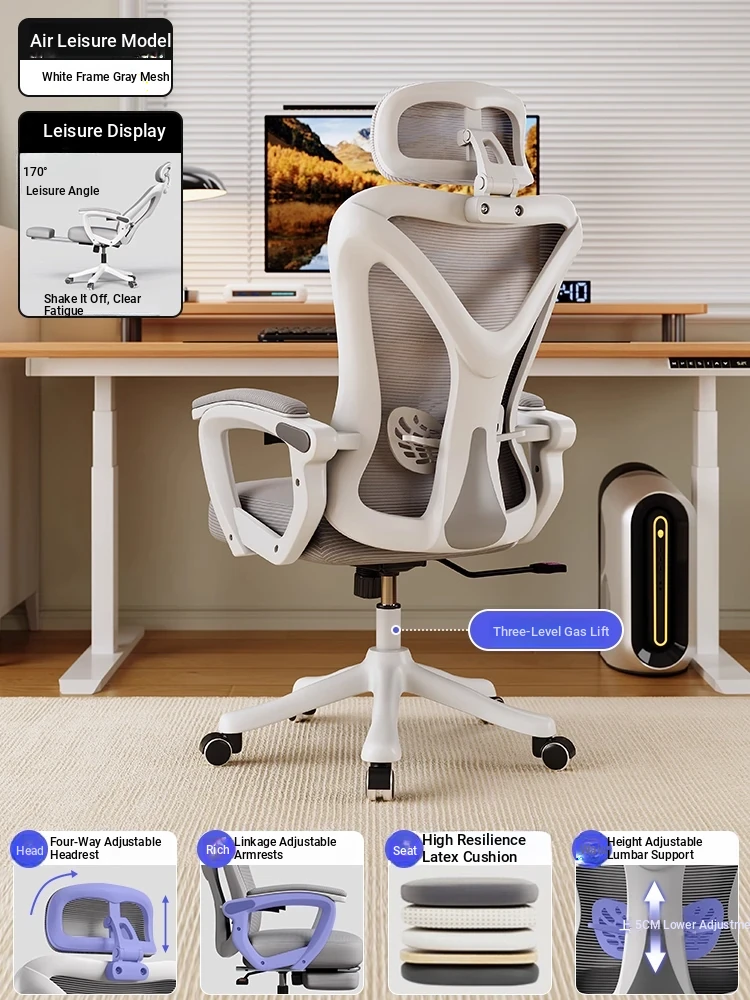 [Flagship Model] Latex Cushion|Xuanmu Gray|【135°Can Lie down +35°Xiaoyao]|With Footrest|Four-Stage Gas Spring|Adjustable Lumbar Support