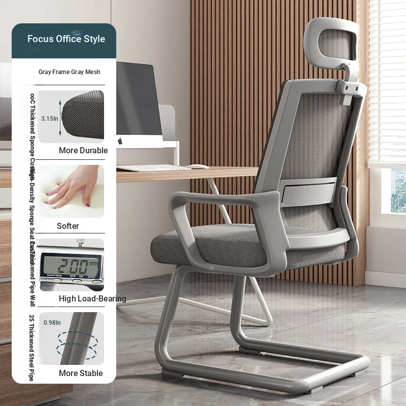 One-Piece Arched Headrest⭐High Elastic Sponge⭐Gray Frame + Adjustable Headrest| 3.15in Cushion | Bearing Capacity 250kg