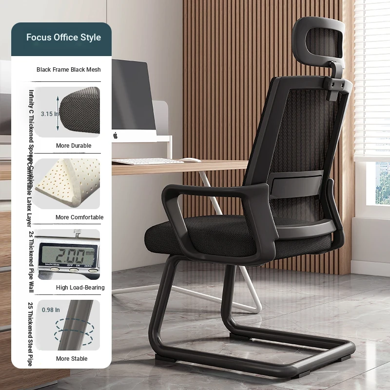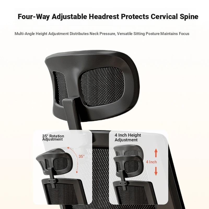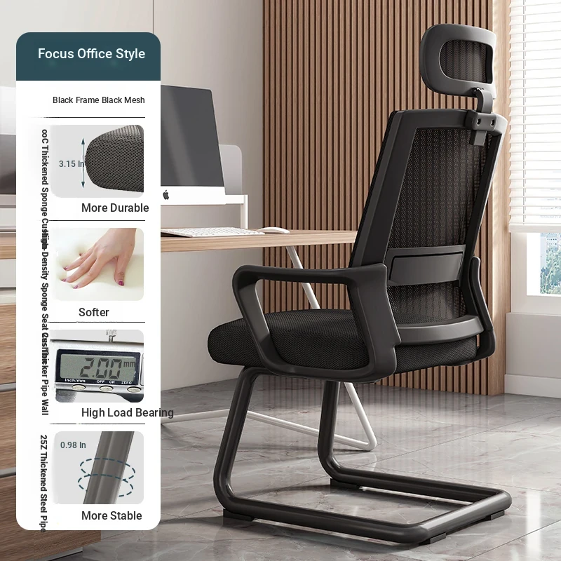 One-Piece Arched Headrest⭐High Elastic Sponge⭐Black Frame Black + Adjustable Headrest| 3.15in Cushion | Bearing Capacity 250kg