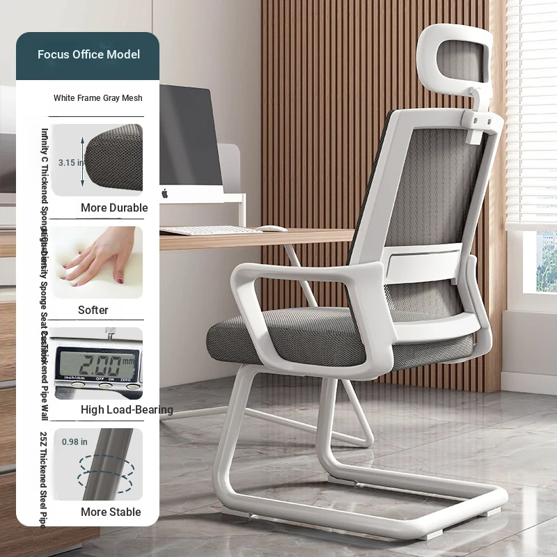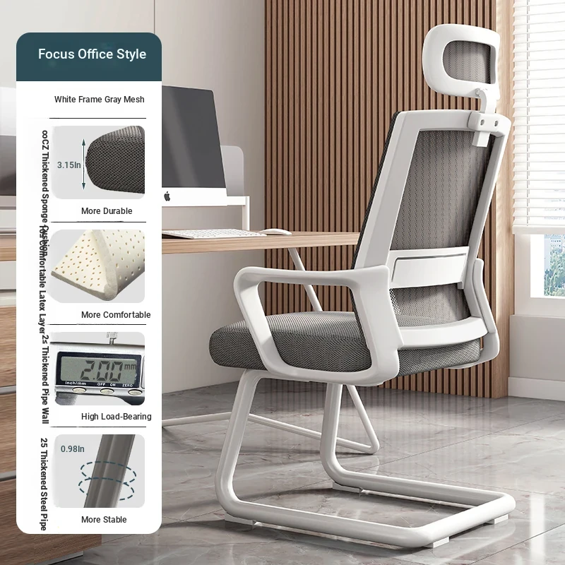 One-Piece Arched Headrest⭐High Elastic Sponge⭐White Frame Grey + Adjustable Headrest| 3.15in Cushion | Bearing Capacity 250kg