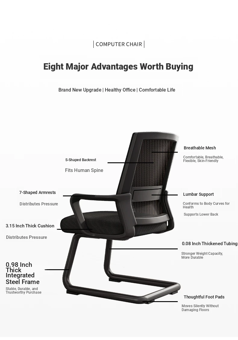 Ergonomic Home Office Chair - Comfortable Computer Desk Chair for Long Hours, Stylish Bow-Back Design, Perfect for Meetings and Daily Use