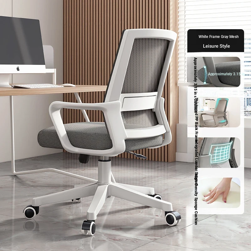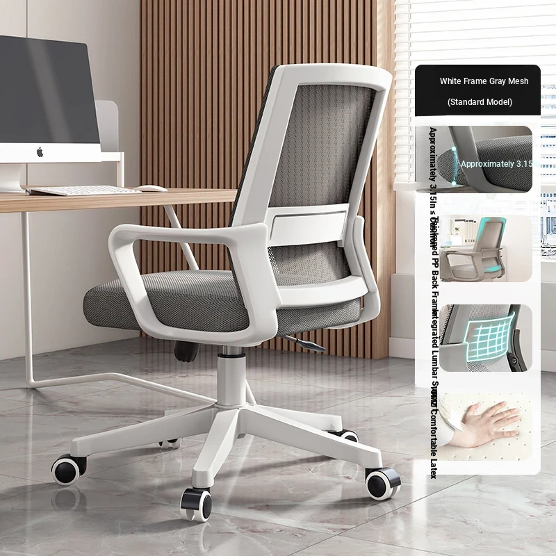 【Featured Image Style】White Frame Grey Mesh | High-Elasticity Sponge Seat Cushion | Weight Capacity 250kg