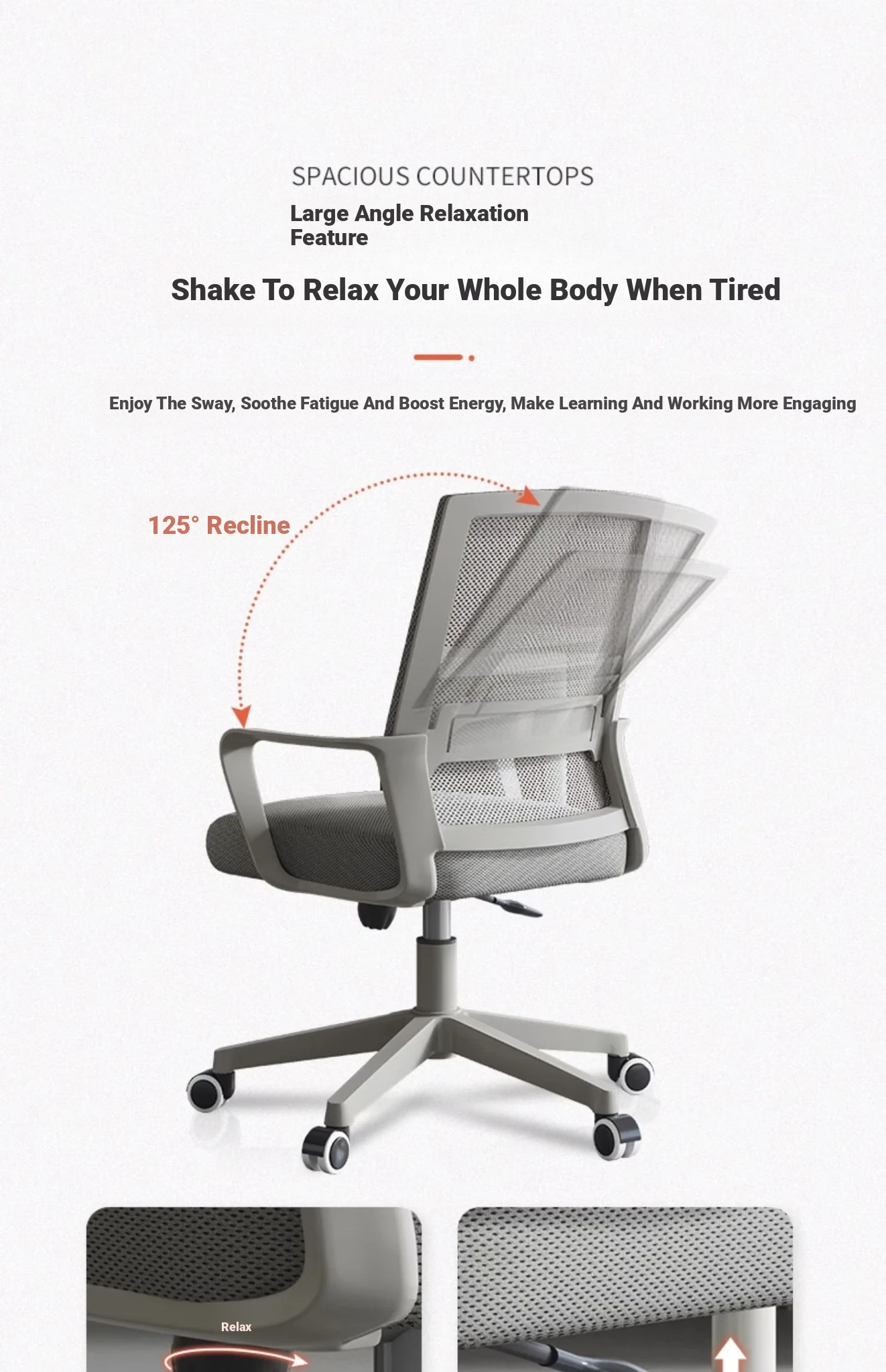 【Main Image - Leisure Style】Gray Frame & Gray Mesh | High-Elasticity Sponge Seat Cushion | 125 ° Lean Back