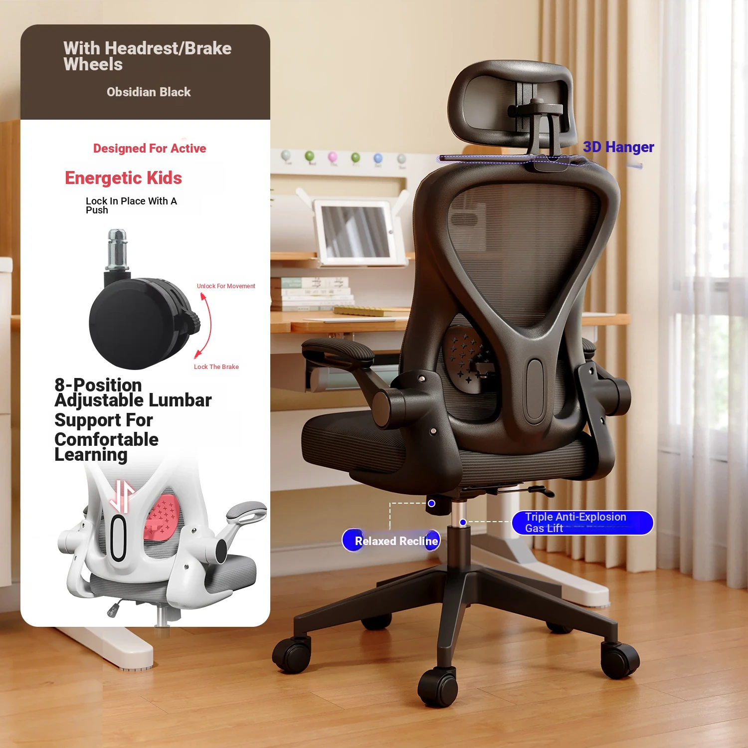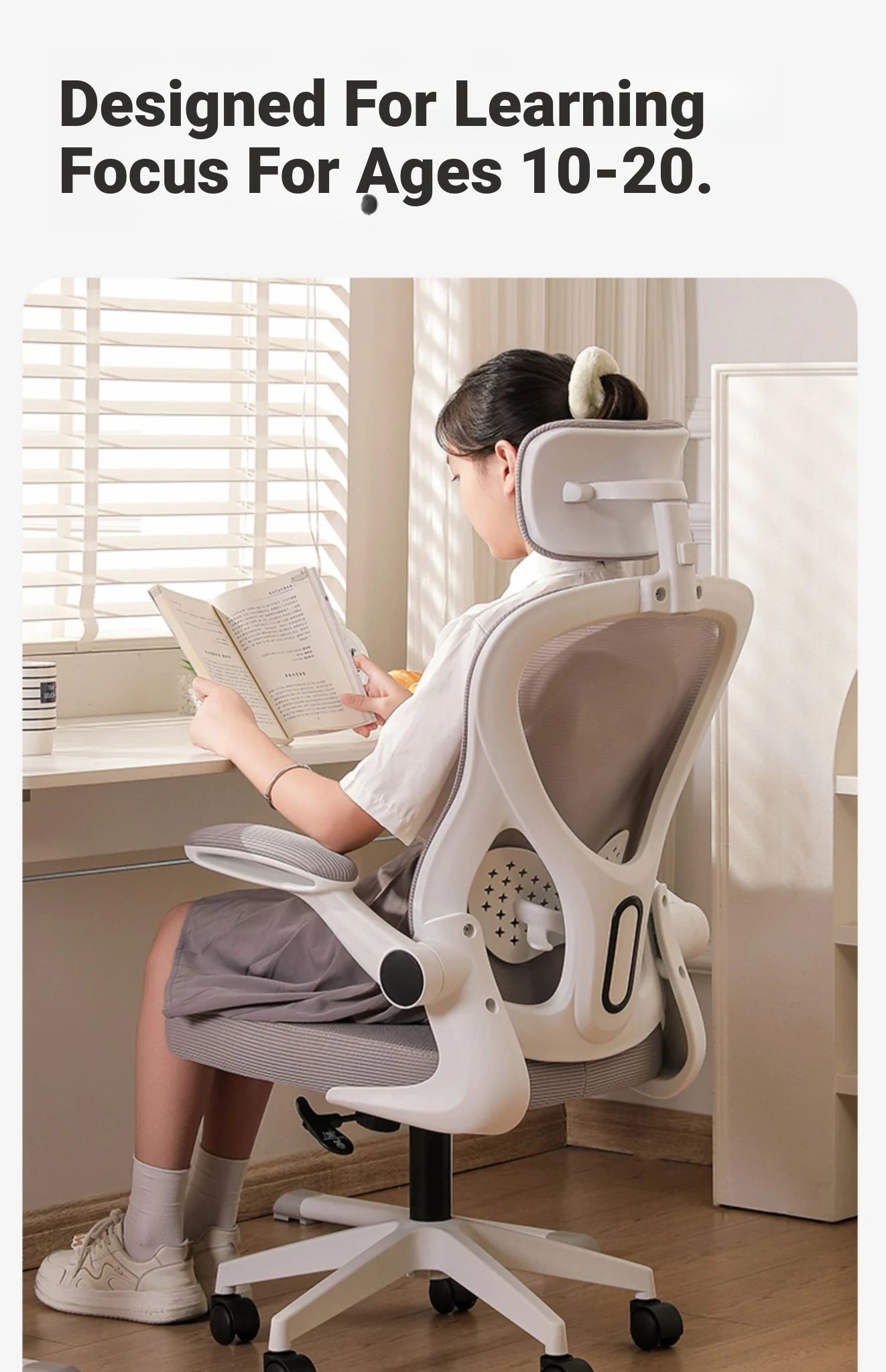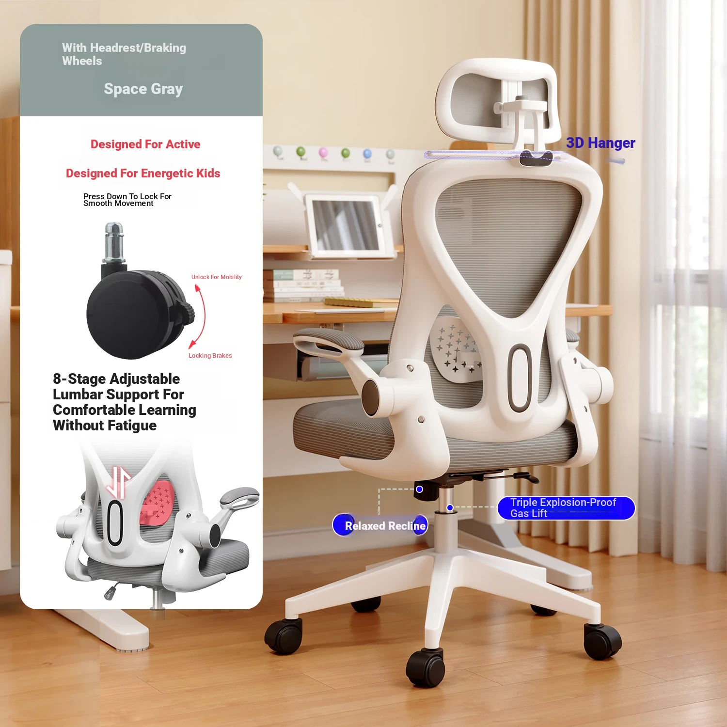 Ergonomic Study Chair for Teens - Comfortable Seating for Kids and High School Students - Ideal for Home Use, Desks, and Computer Work