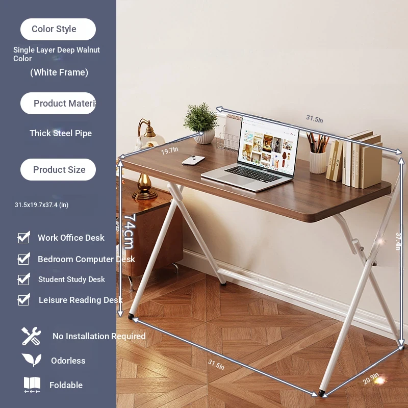 [Portable Single-Layer Model] Dark Walnut + White Frame 80X50X74