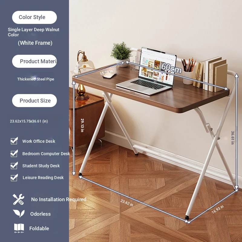 [Portable Single-Layer Model] Dark Walnut + White Frame 60X40X74