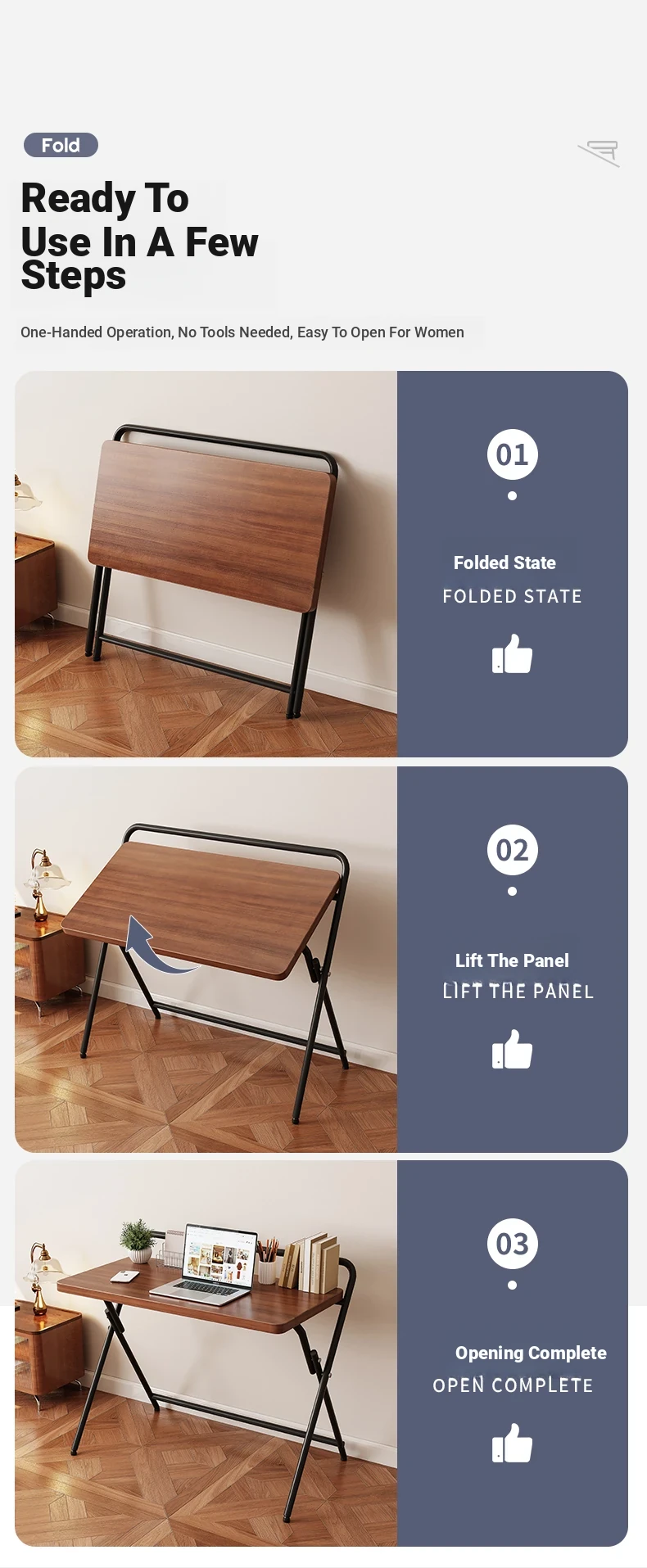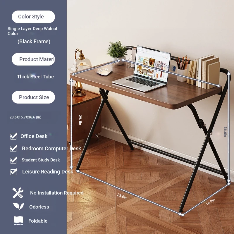 Foldable Desk - Compact Study Table for Home, Bedroom, and Office, Perfect for Students and Laptop Use, Easy to Store and Transport, Versatile Small Desk for Any Space
