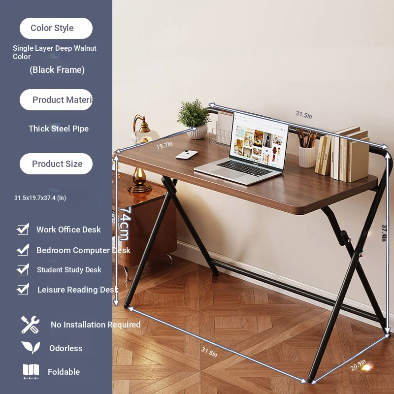 [Portable Single-Layer Model] Dark Walnut + Black Frame 80X50X74