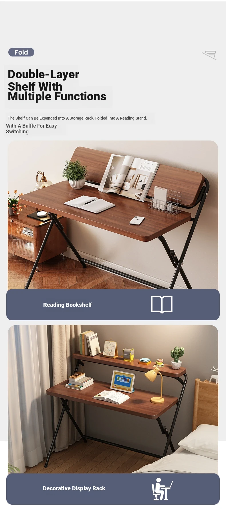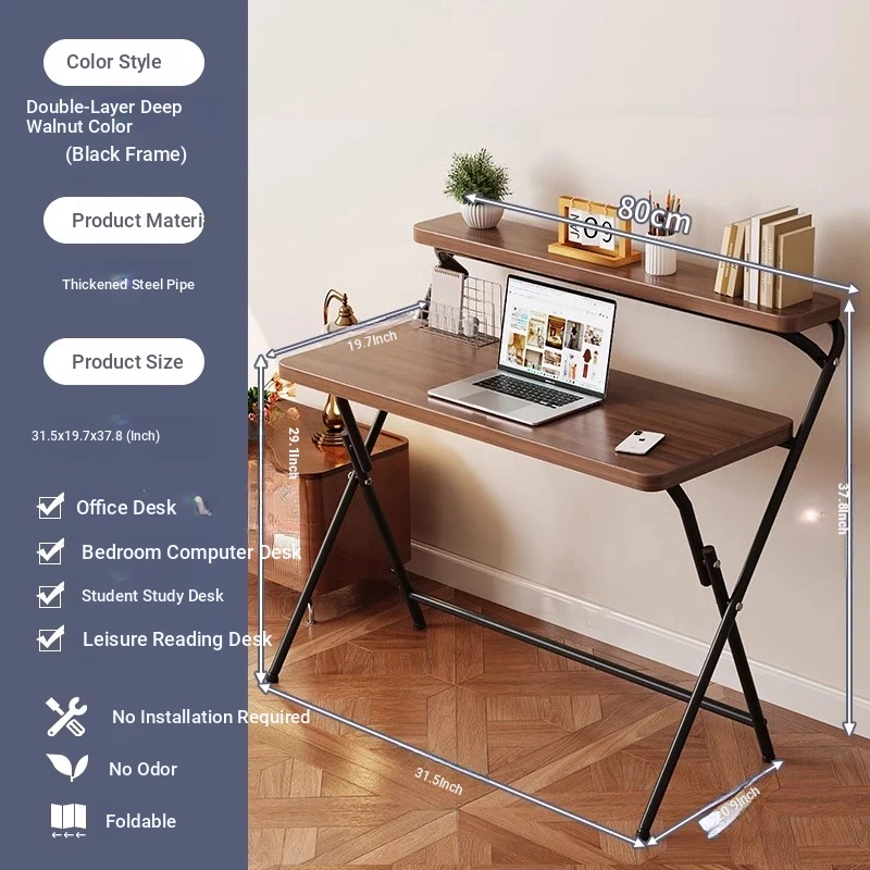 [Portable Double-Layer Model] Dark Walnut + Black Frame Double Layer 80X50X96