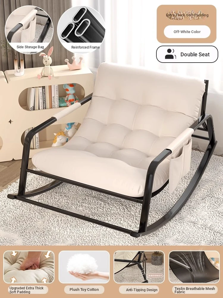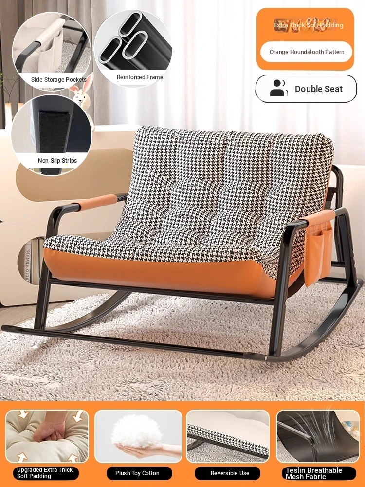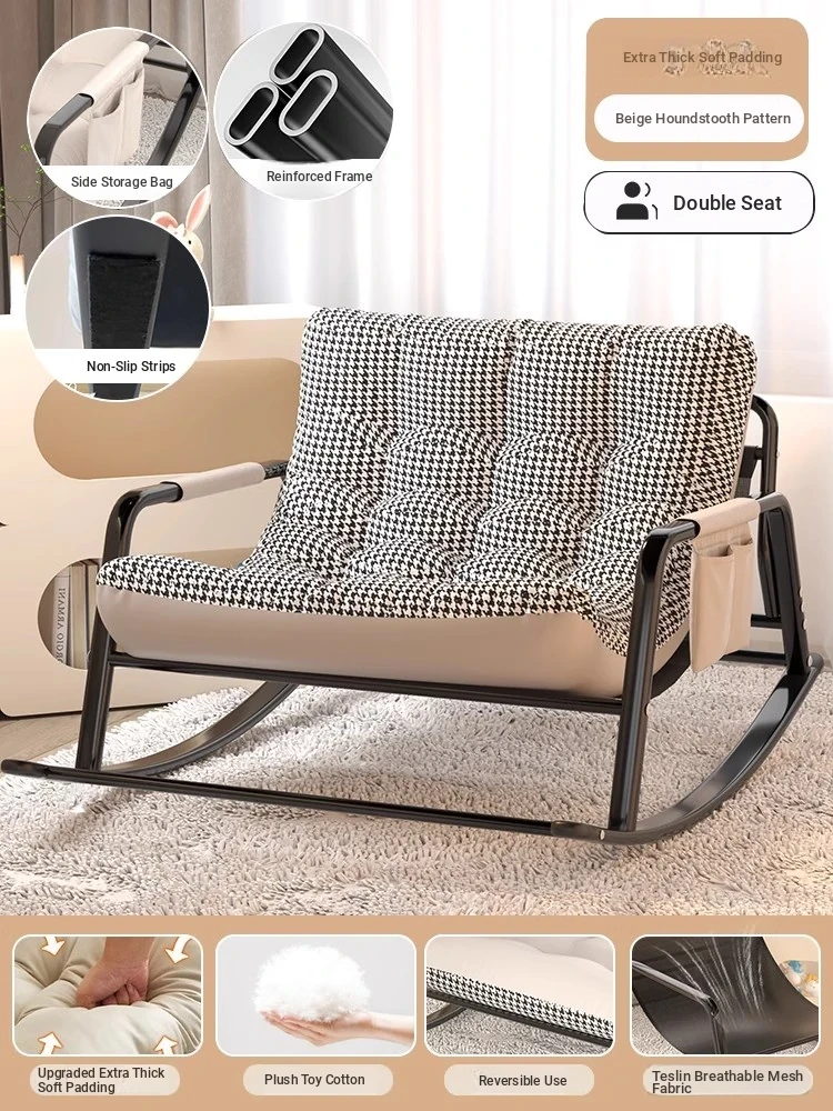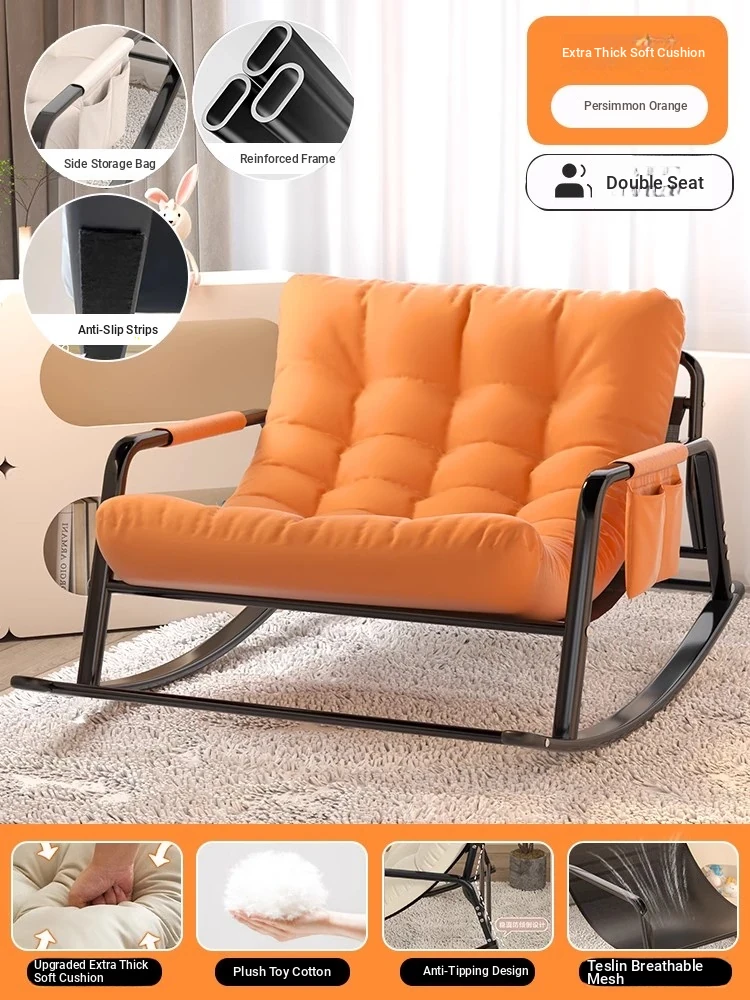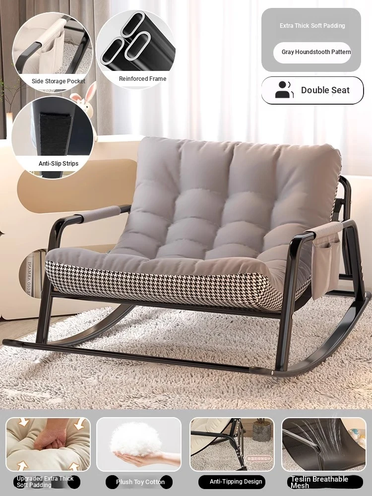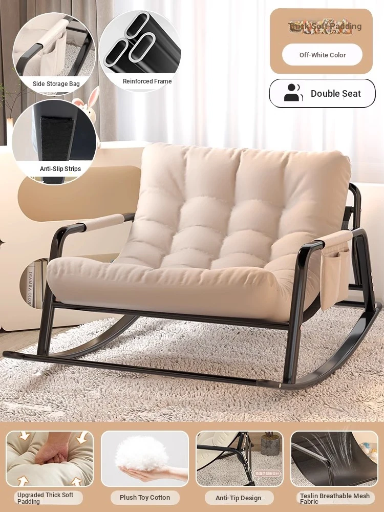 【Free Shipping in Hong Kong】Lazy Sofa Double Rocking Chair for Adults – Perfect for Relaxing on the Balcony, Comfortable and Stylish Lounge Chair for Enjoying Leisure Time!