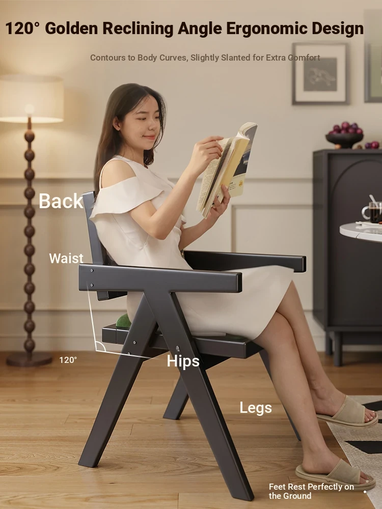 French Vintage Dining Chair - Chic Chandigarh Style Backrest Chair for Balcony - Luxurious and Elegant Leisure Seat